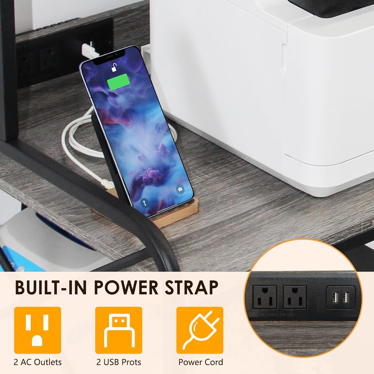 - 【Printer Table with Power Sockets】This printer table is equipped with 2 power outlets and 2 USB charging ports, allowing you to easily connect and charge your printer, paper shredder, scanner, phone, headset, tablet, and other office equipment. The printer stand combines functionality and style, providing a modern and elegant look to your workspace.