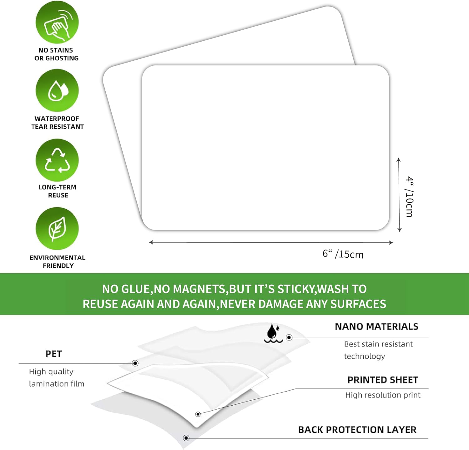 SVNOOC Reusables Labels for Storage Bins 4x6 in, Sticks Securely and Removes Cleanly, Multi-Use Dry Erase Stickers for Whiteboard/Desk/Refrigerator/Home/Office/Classroom (6 Pack), Dry Erase Sheets