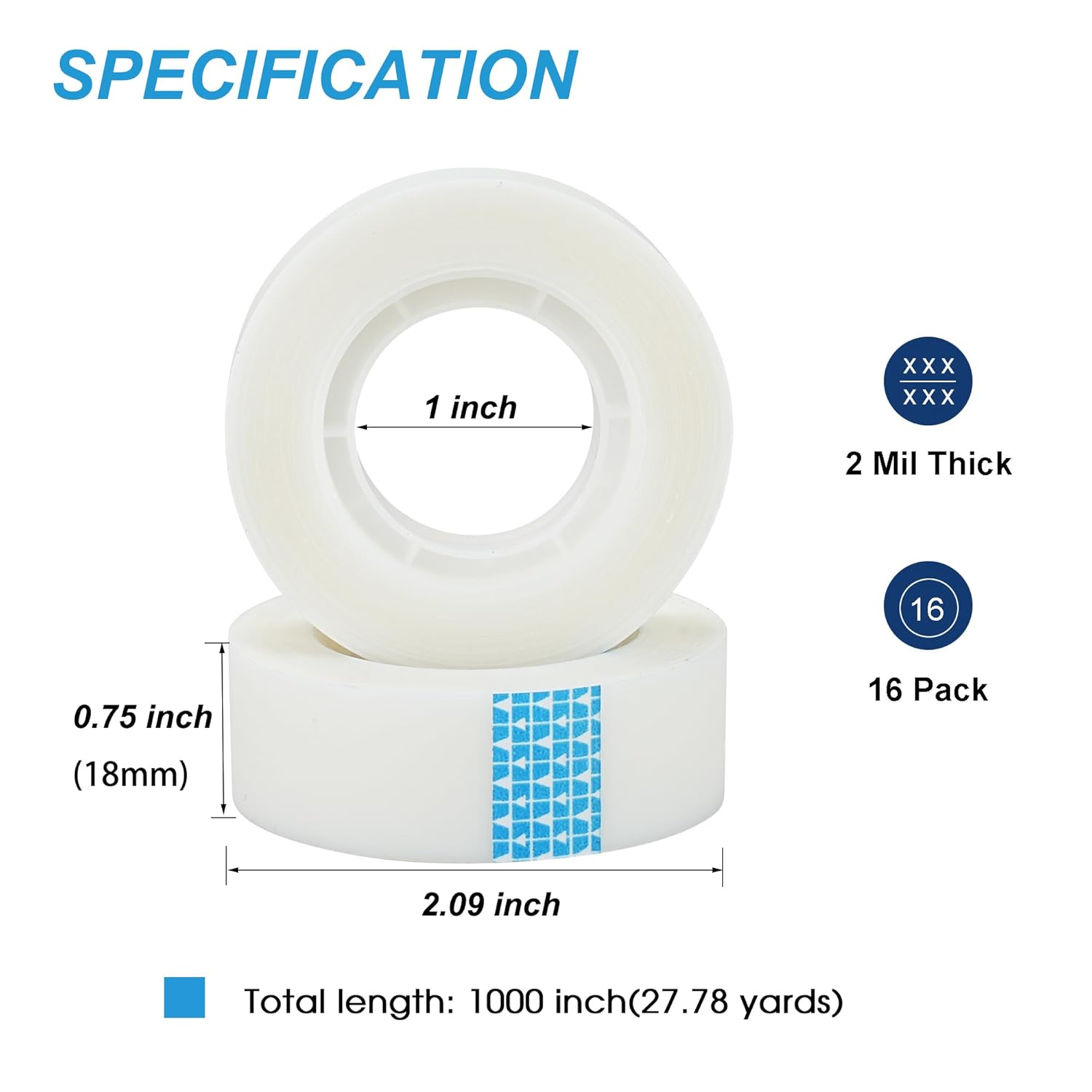 - Classic Size: Each roll of tape is 0.75 inches wide and 1000 inches (25.4 meters) long; fits standard tape dispensers, and tears easily with a light force in one direction.