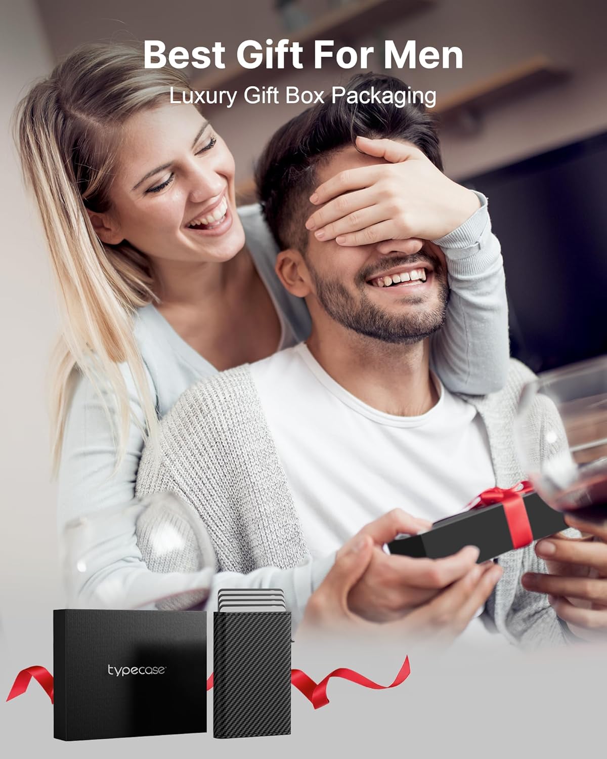 typecase Mens Wallet Card Holder: Pop Up Aluminum Case, Genuine Leather, Smart, RFID Blocking, Slim, Minimalist, Front Pocket - 9-14 Card Capacity | ID Window | Cash Slot (Carbon Fiber Navy)