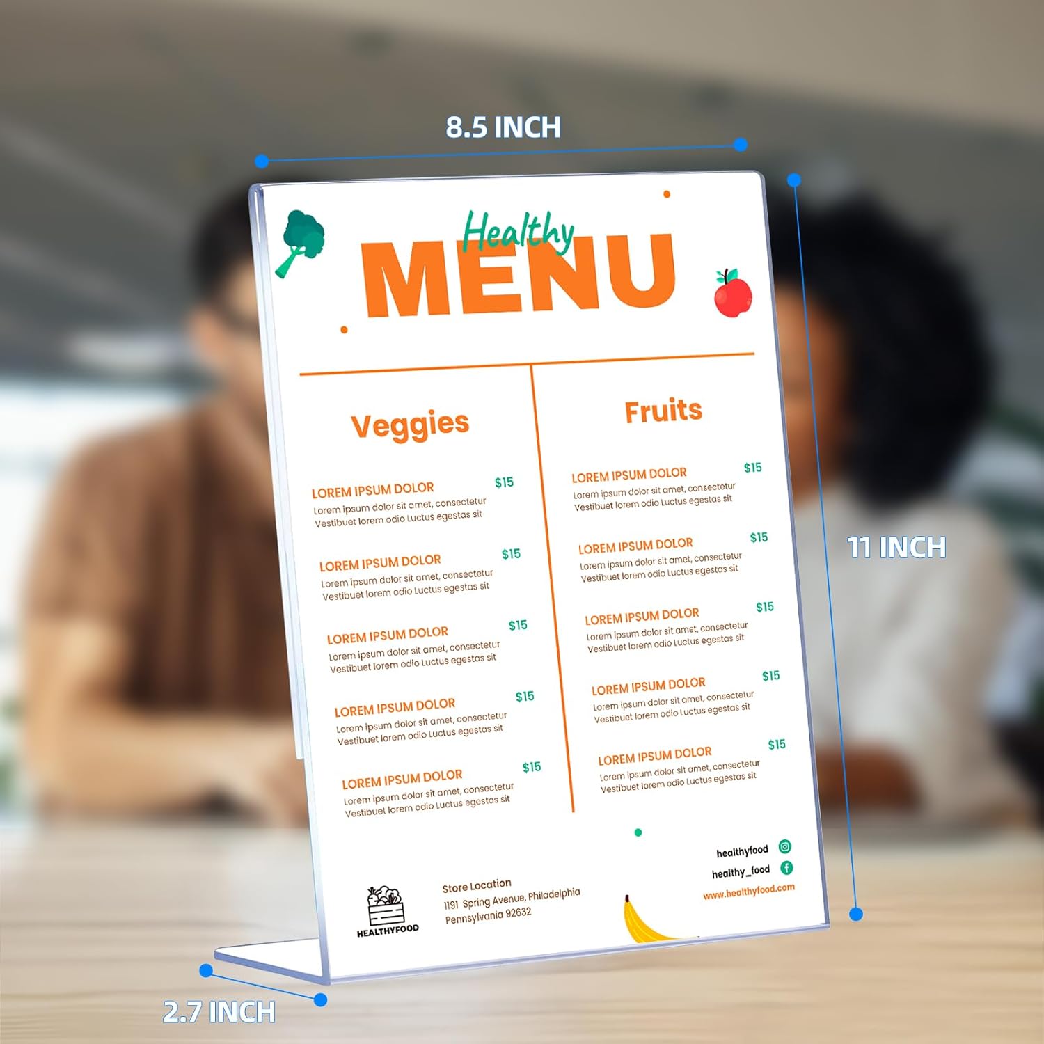 - Premium Clarity & Durability: Crafted from crystal-clear acrylic sheets, these 8.5x11 acrylic sign holders ensure scratch-resistant, long-lasting visibility for signs, flyers, or documents.
