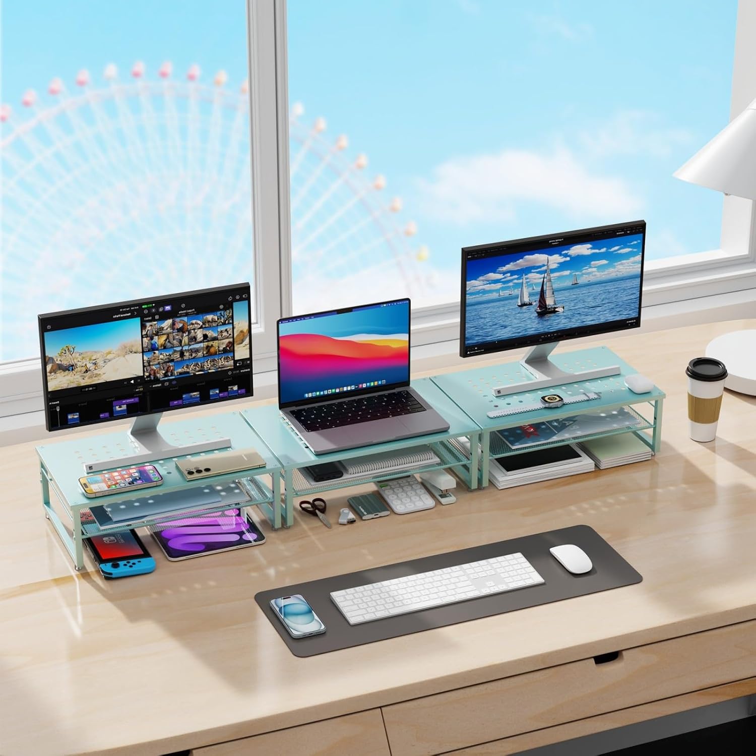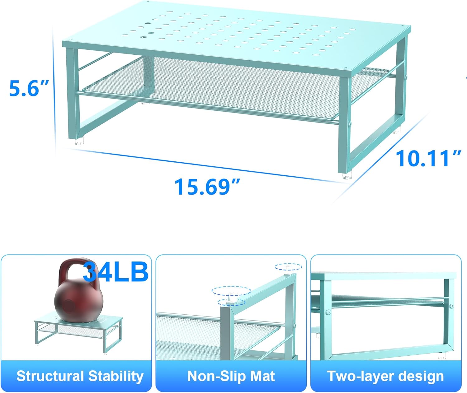 gianotter 2-Tier Metal Monitor Stand Riser, Desk Organizer for Monitor, Office Desk Storage Organizer for Office Supplies (Blue)
