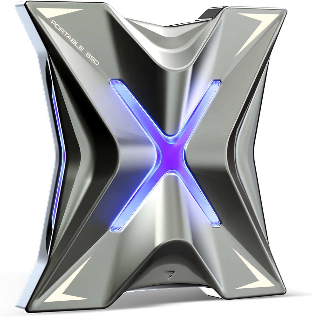 - Sleek Magnetic X-Design:Move Speed RX20 SSD clips onto laptop lid as a style statement during client meetings, with hidden magnets built into the X-shaped edges. The spacecraft-inspired grooves catch light subtly like a luxury watch bezel, while the soft RGB glow adds a tech-savvy vibe without overwhelming your workspace