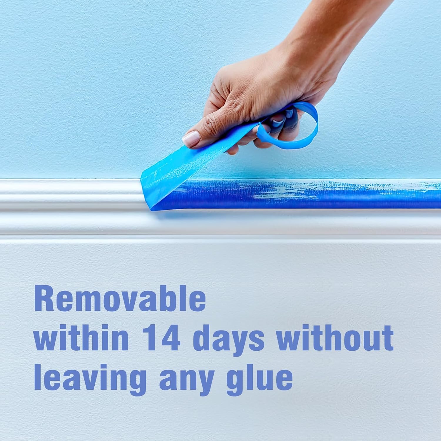 - Easy to remove: Multi-surface blue painter's tape can be removed within 14 days without leaving any residue, and can keep the surface of the object clean; no tools are needed when using it, the blue tape can be peeled off by hand, and the operation is simple; when removing, gently tear off a corner of the tape at a 45-degree angle