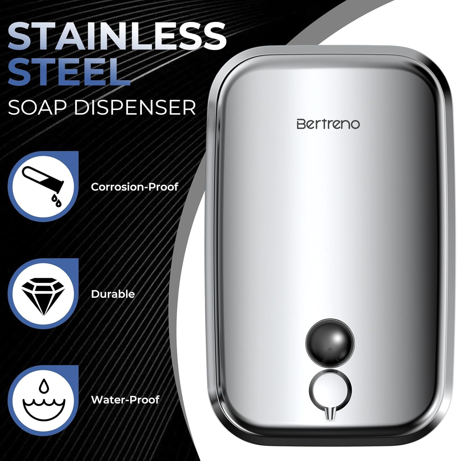 - 【DURABLE STAINLESS STEEL】Our commercial soap dispenser wall mount made from high quality 304 stainless steel. Corrosion proof and rust proof for a sleek and long-lasting design.
