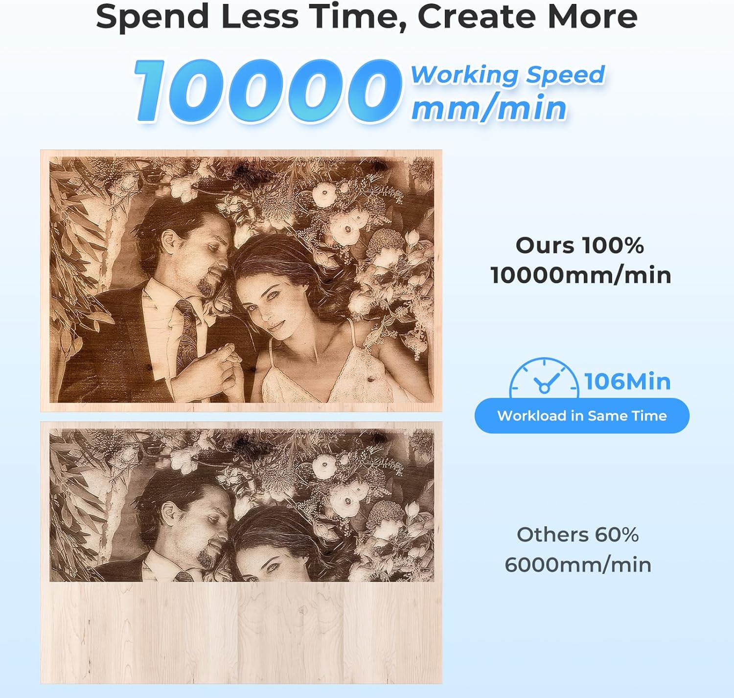 - 【Powerful 10W Laser】This 10W laser engraver machine delivers fast, precise engraving and cutting on materials like wood, acrylic, and leather at speeds of up to 10,000mm/min, ideal for hobbyists and small businesses seeking high efficiency.