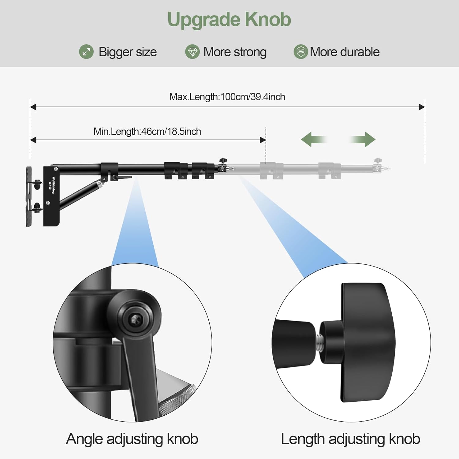 Wellmaking Wall Mount Triangle Boom Arm 39.37inch/100cm, Ring Light Mount Support 180°Flexible Rotation Comes with Tilt Swivel Mount for Studio Video Light, Monolight, Photography, Softbox, Reflector