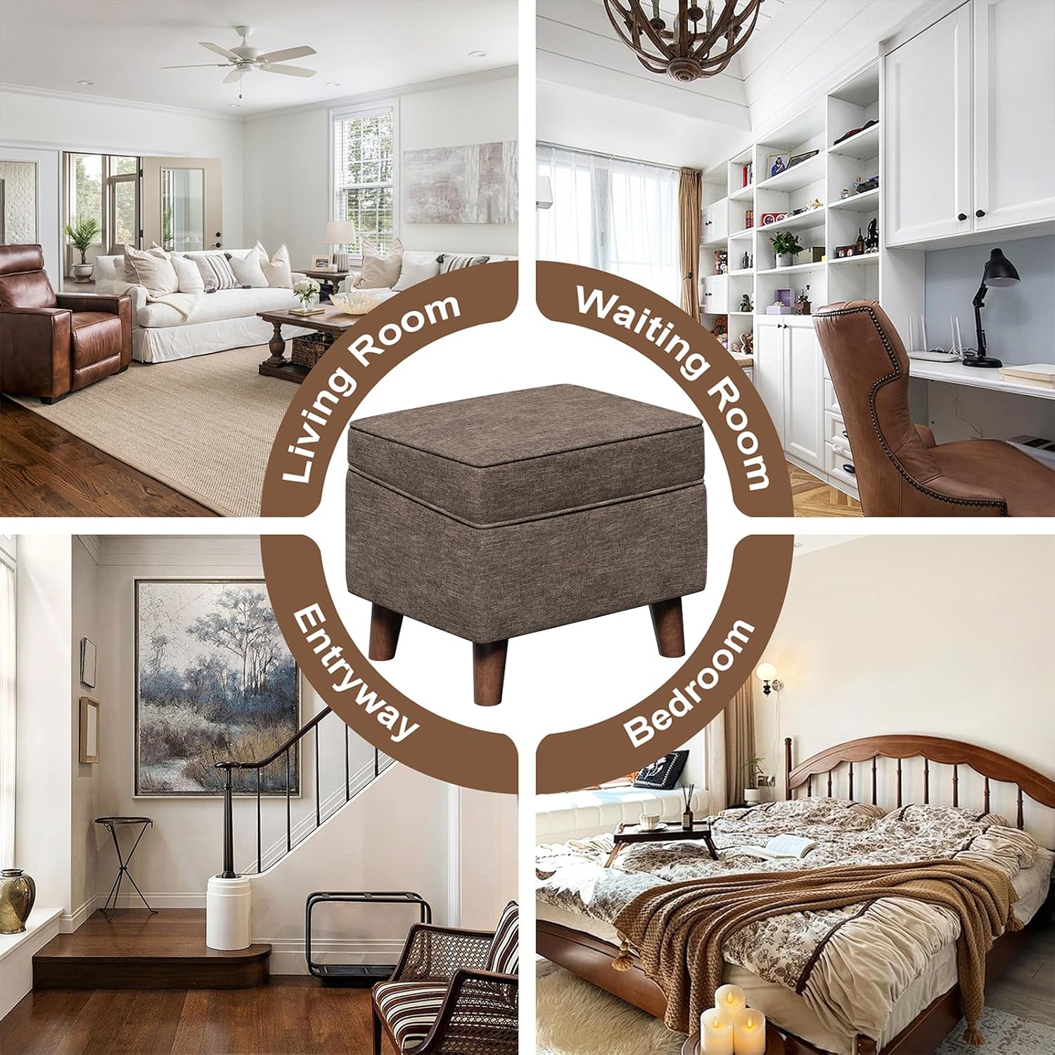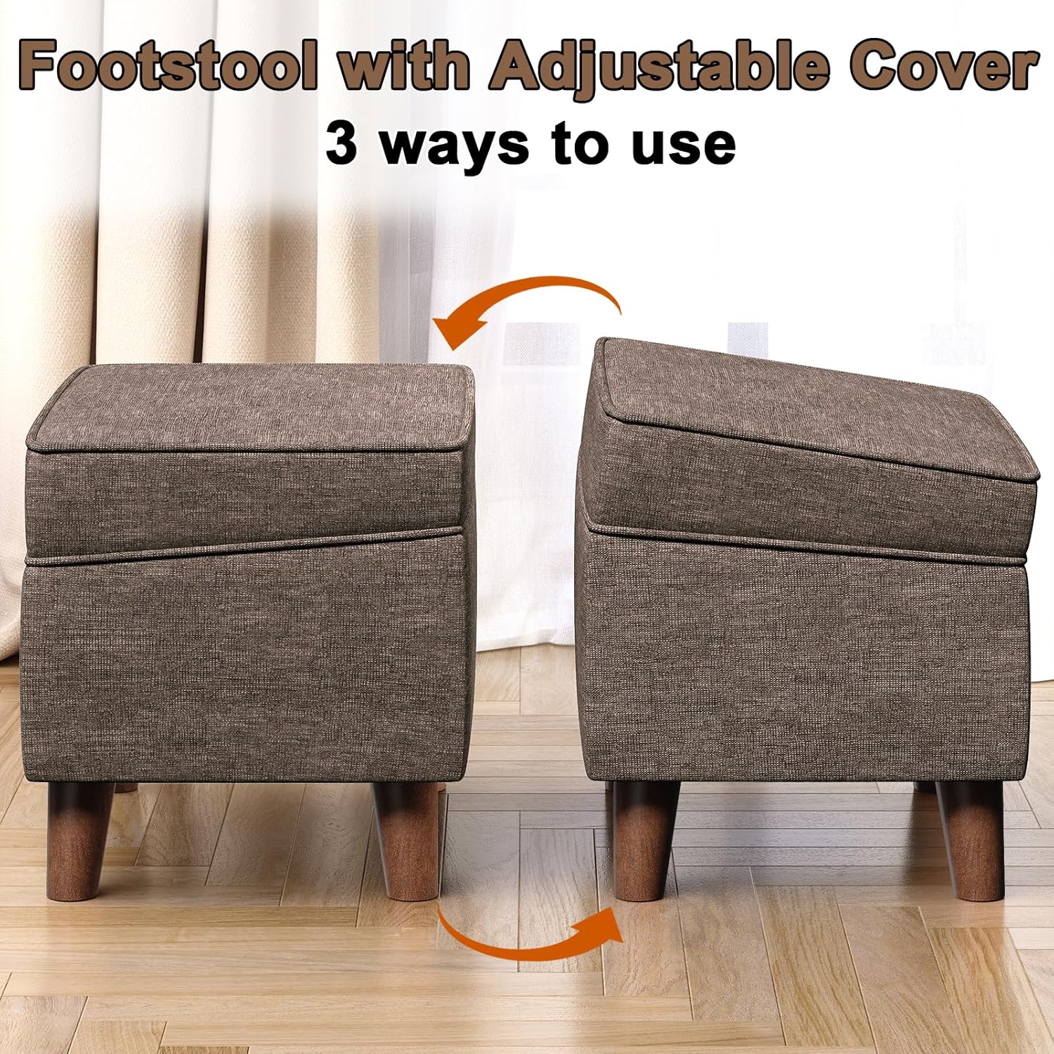 Storage Ottoman with Adjustable Cover, Soft Step Stool, Footrest and Seat, Ottoman Foot Rest for Living Room, Bedroom, Dorm, Brown