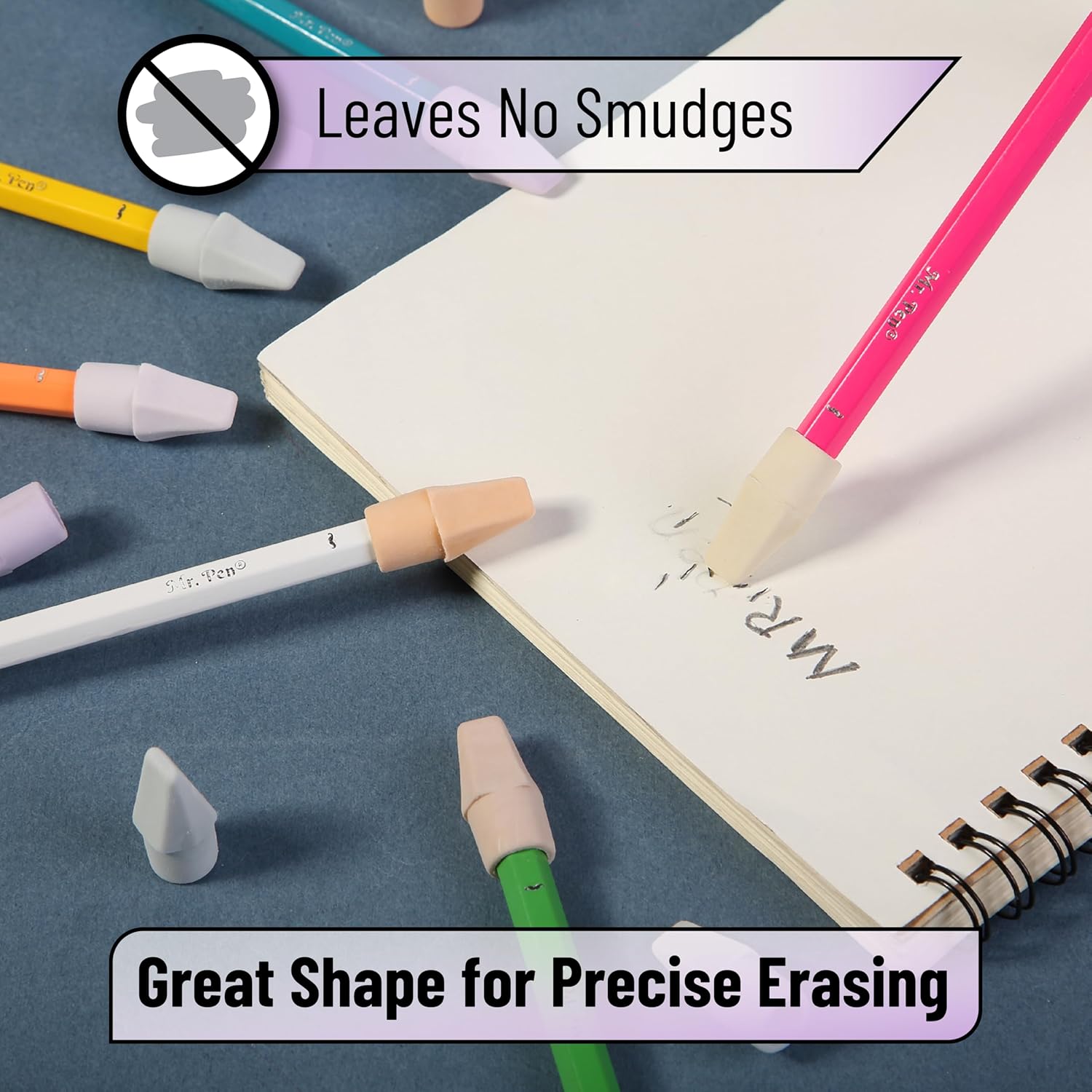 Mr. Pen- Pencil Erasers Toppers, 120 Pack, Colorful, Latex Free, No Smudge, Mr Pen Erasers for Pencils