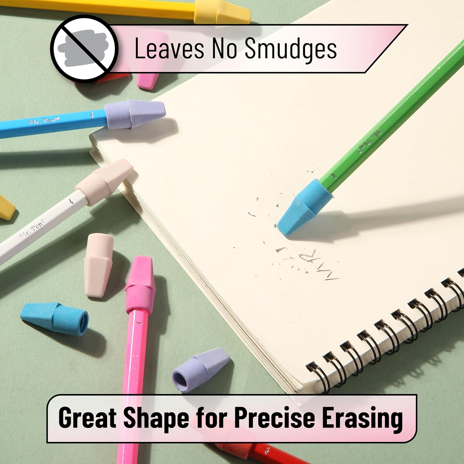 Mr. Pen- Pencil Erasers Toppers, 120 Pack, Colorful, Latex Free, No Smudge, Mr Pen Erasers for Pencils, Pencil Top Erasers, Eraser Caps, Eraser Tops