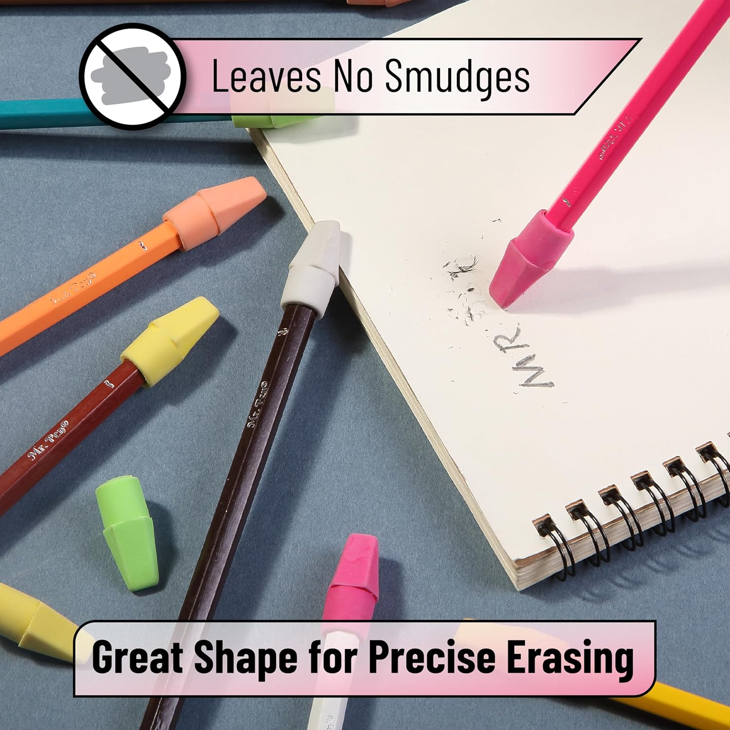 Mr. Pen- Pencil Erasers Toppers, 120 Pack, Colorful, Latex Free, No Smudge, Mr Pen Erasers for Pencils