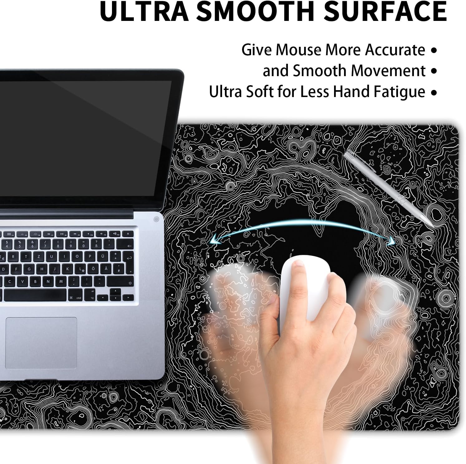- ★【Soft Non-slip Rubber Base】: Soft and dense non-skid nature rubber base keeps the full desk pad firmly in place, providing stable operation of the mouse and keyboard. This Topography Moon Relief Map large mouse mat remains uniformly flat even over imperfect surfaces. You can completely immerse yourself in work or games without worrying about the mouse pad moving.