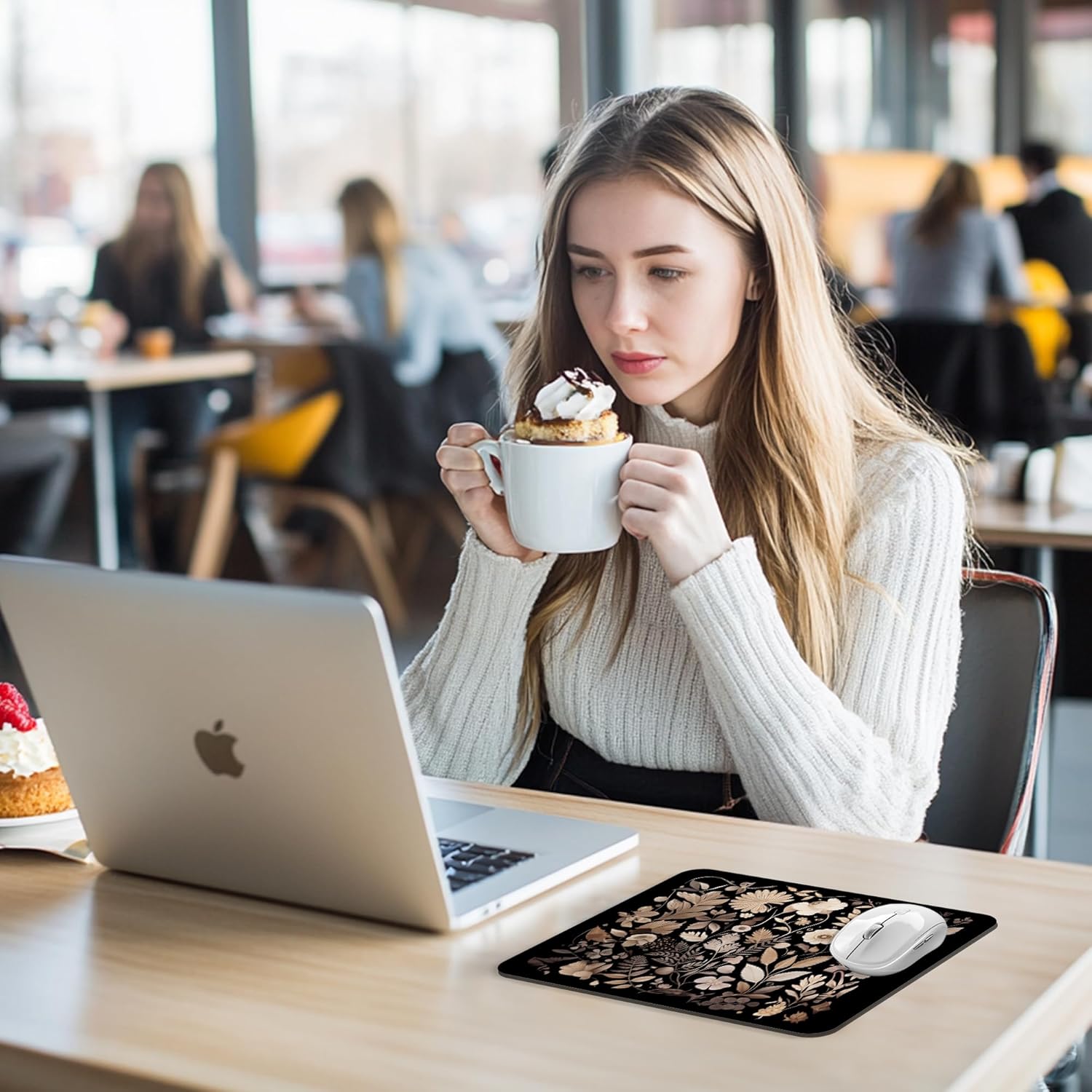 Floral Black Mouse Pad - Vintage Floral Decor Mousepad, Black Boho Flower Office Desk Mouse Pad, Boho Coworker Gifts, Gifts for Flower Lovers, 9.5x8 Inches