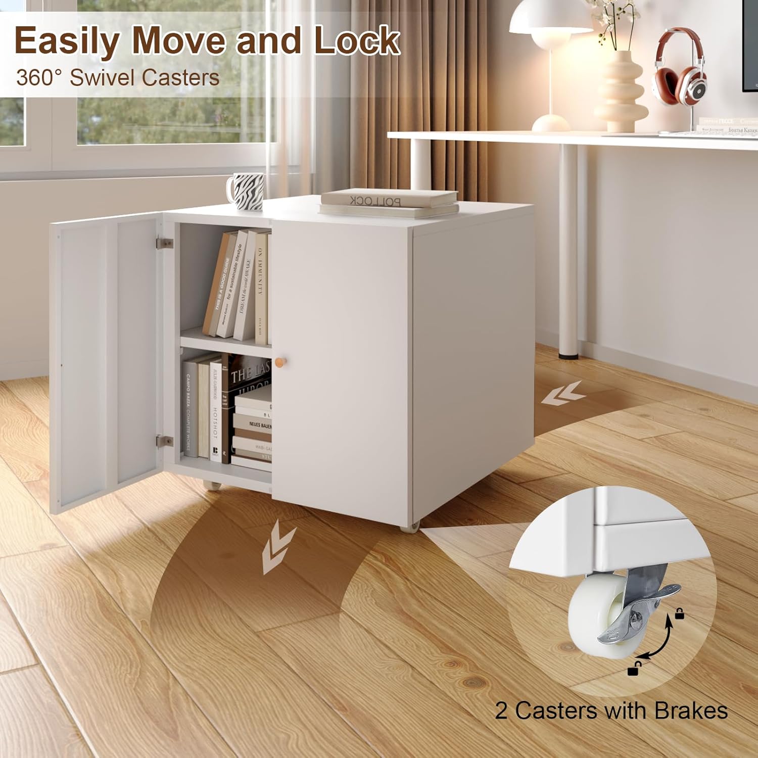 - [Flexible movement]: This file cabinet equipped with 4 rotation wheels, which make the cabinet easily moved to the required location, providing a convenient operating experience and suitable for various workplaces. This wheels can make the cabinet move flexibly, increases the efficiency of the cabinet, while the braking system can also keep the cabinet stable at any time.