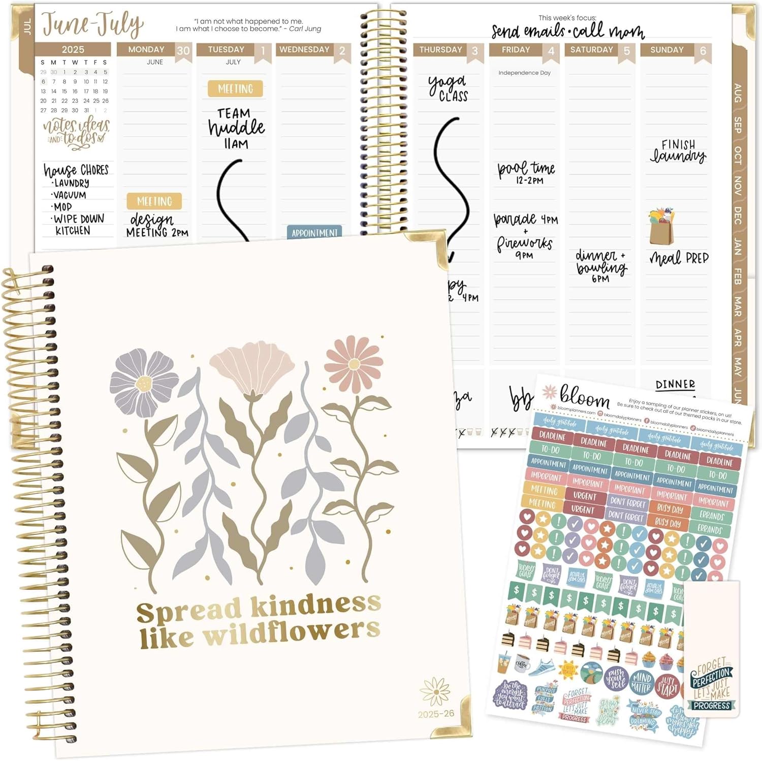 bloom daily planners 2025-2026 Hardcover Academic Year Goal & Vision Planner (July 2025 - July 2026) - Monthly & Weekly Calendar Agenda Organizer - 7.5" x 9" - Spread Kindness Like Wildflowers