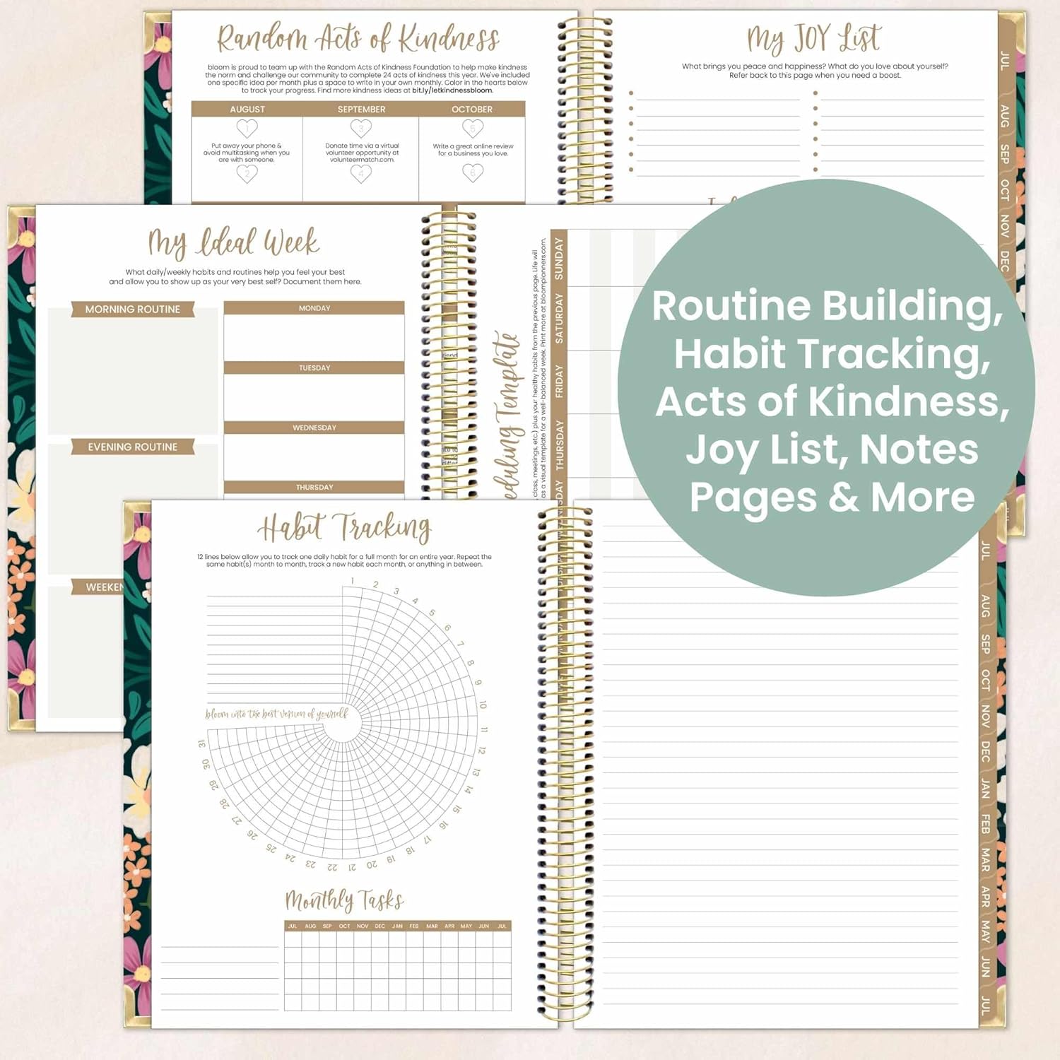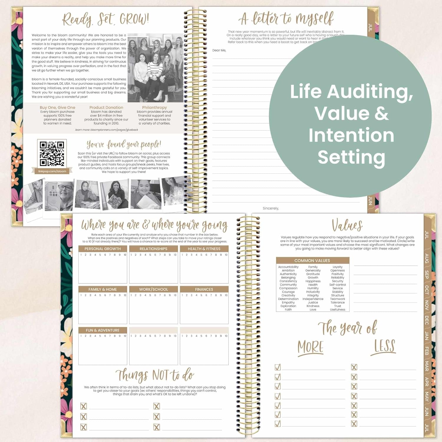 - ADDED BONUSES TO HELP YOU BLOOM: Stay on track with tools like a personal mission statement prompt, streamlined monthly vision boards and weekly action planning, a monthly budget and bill tracker, habit tracking sheet, 4 notes pages, and more!