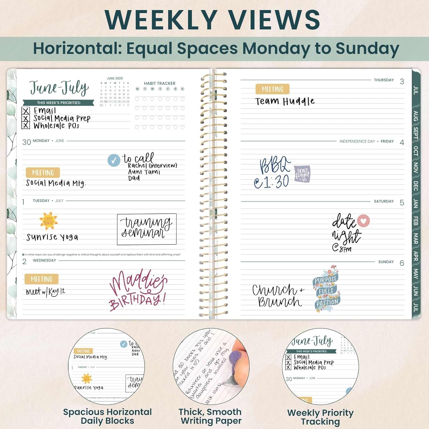 - LARGE 8.5” x 11” PLANNER WITH WEEKLY & MONTHLY LAYOUTS: This 2025-2026 academic planner features two-page monthly spreads and spacious horizontal weekly pages. Each weekly view includes priority & habit trackers to help you stay productive and goal-focused from July 2025 to July 2026.