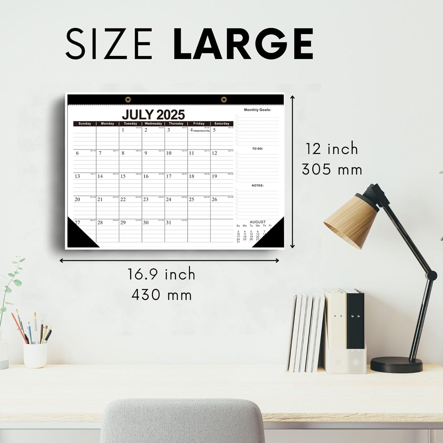 - Versatile Display Options: Boasting dual hanging holes, this large calendar 2025-2026 can be used as a wall-mounted organizer or a desk calendar 2025-2026. The 11.7"x17" format ensures easy visibility in home offices, classrooms, or living spaces, while its reinforced design guarantees durability even with frequent use. It's perfect for long-term planning and organization, suiting various display preferences.