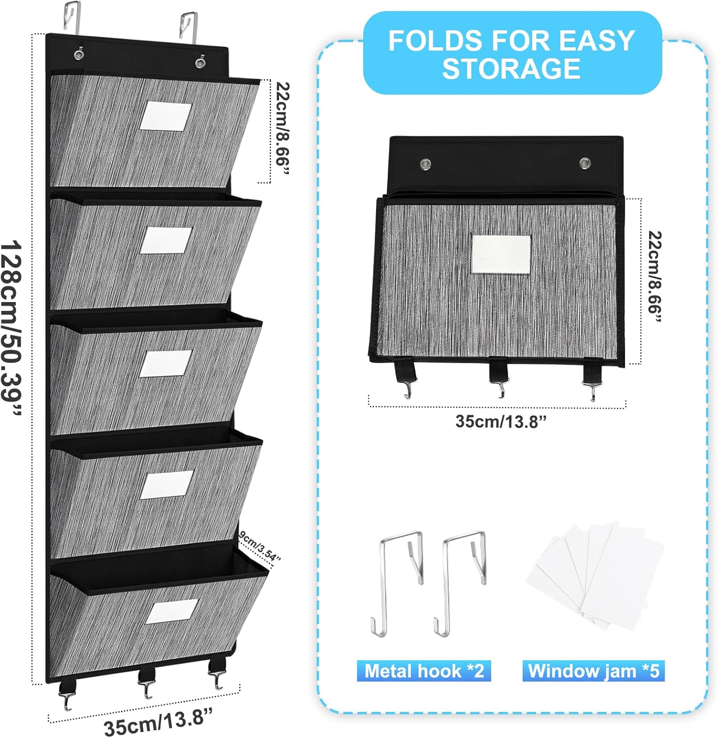 - 👍【5 Large Pockets】: This back to school wall file organizer measures 50.39” in height and 13.8” in width and it comes with 5 large pockets, for office and teacher classroom organization and storage.