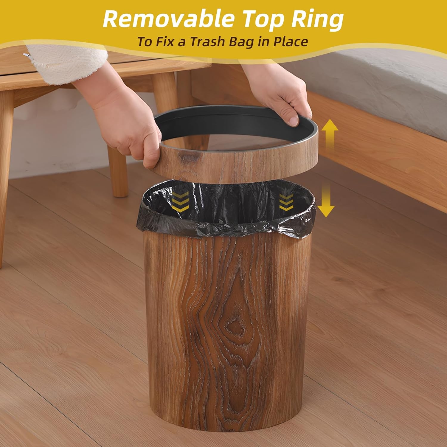 - Removable top ring, ideal for fixing a garbage bag in place.