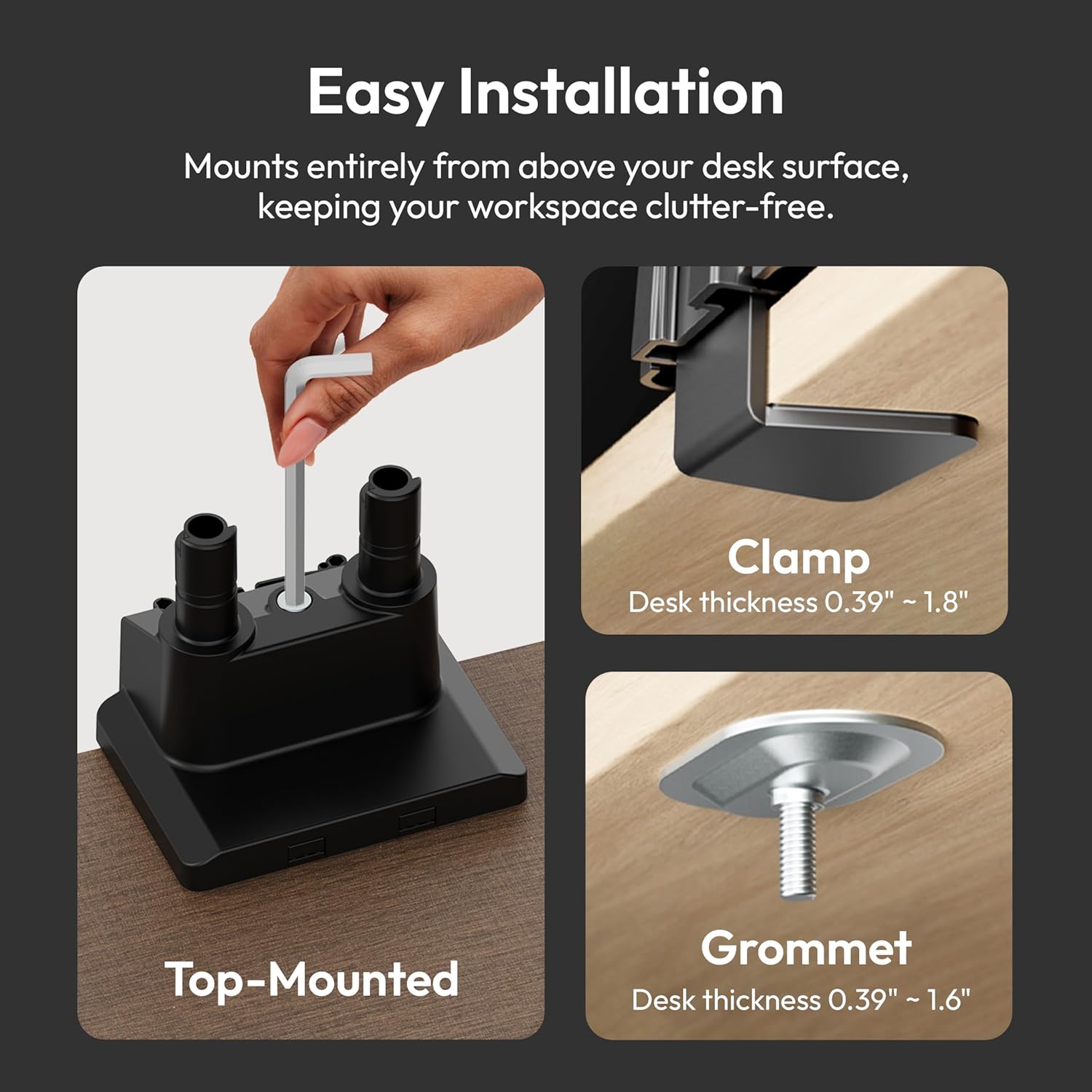 - Streamlined Organization - Keeps your desk clutter-free and organized with the integrated cable management system. No screws are necessary, just slide these pieces in and out of position to manage your monitor's cables!