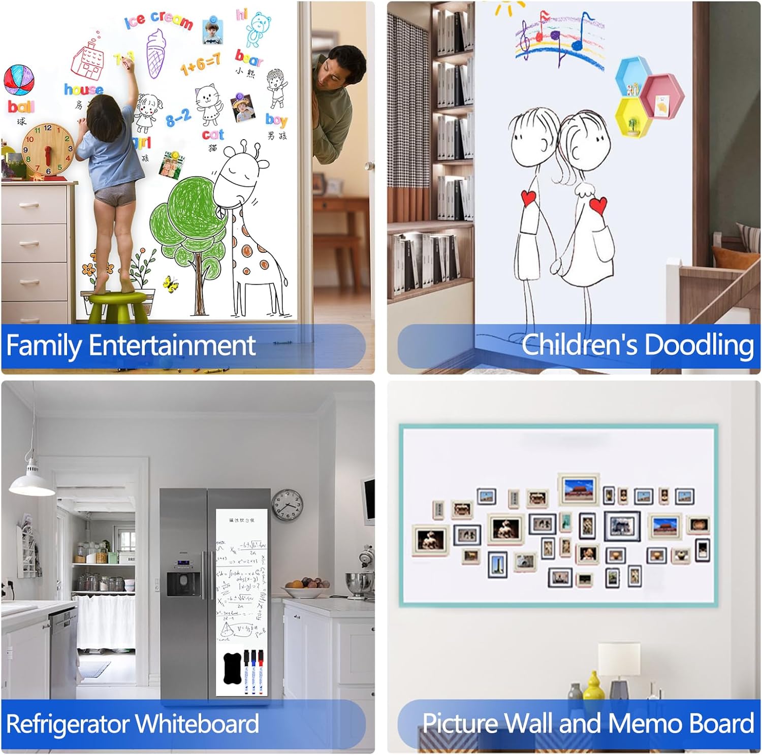 - WIDELY USED: This multifunctional White board wallpaper features magnetic and self-adhesive properties, saving space significantly and making your life more convenient. It is suitable for various occasions, including offices, schools, and homes. Use it for meeting presentations, teaching, children's doodles, family activities, and more. It can also serve as a magnetic whiteboard for your fridge, a chore chart, a dry erase calendar, vision board supplies, a message board, and more.