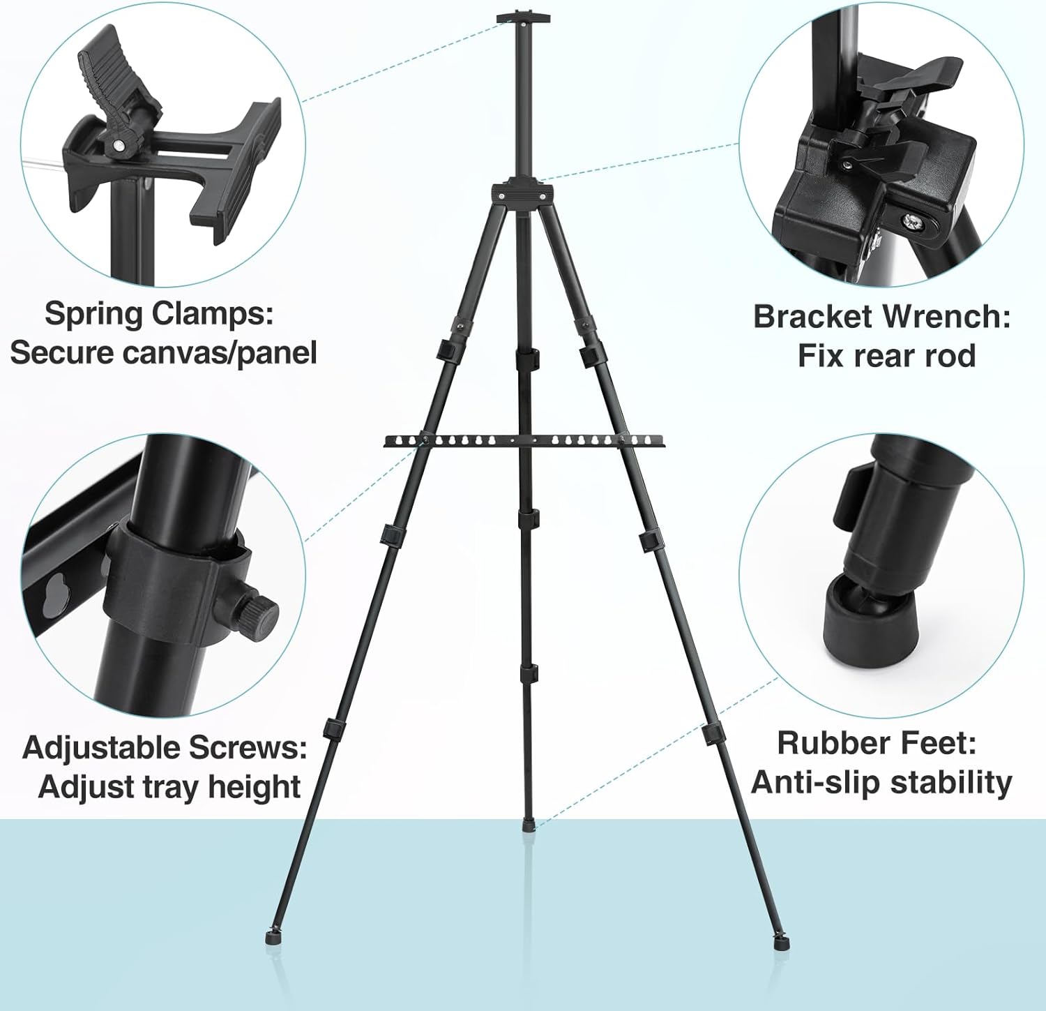 - 【Sturdy and Reliable】The painting easel for adults is made of sturdy metal and has a load capacity of up to 11 pounds, providing stable and long-lasting support for your artwork, portable easel features a non-slip base design for stability on uneven floors