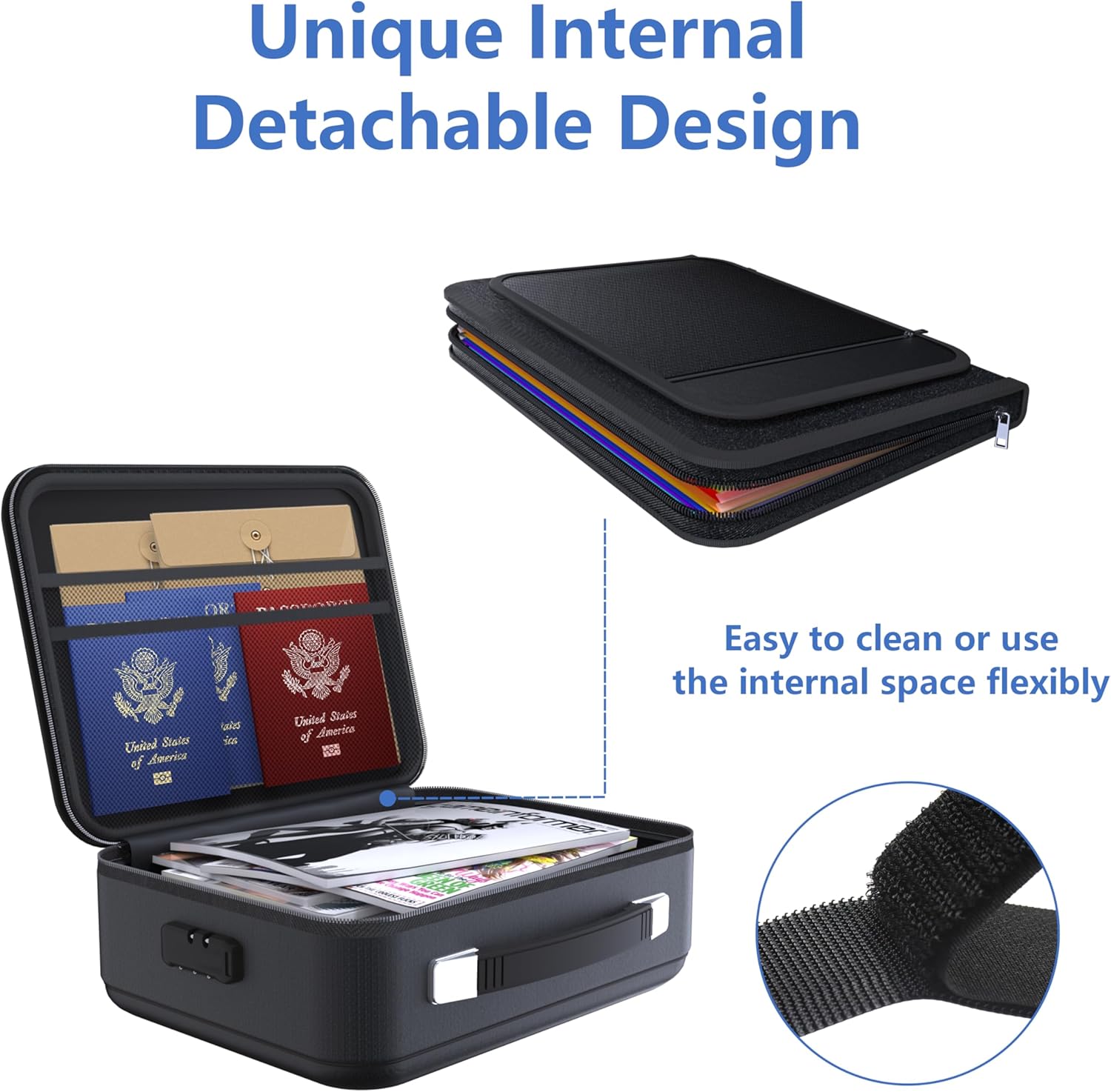 - Important Document Organizer Fireproof and Removable: Unlike soft alternatives, this important document organizer fireproof model features a removable interior design for flexible storage. You can store bulkier documents like laptops or clean the interior when needed—ideal for neat, customizable filing.
