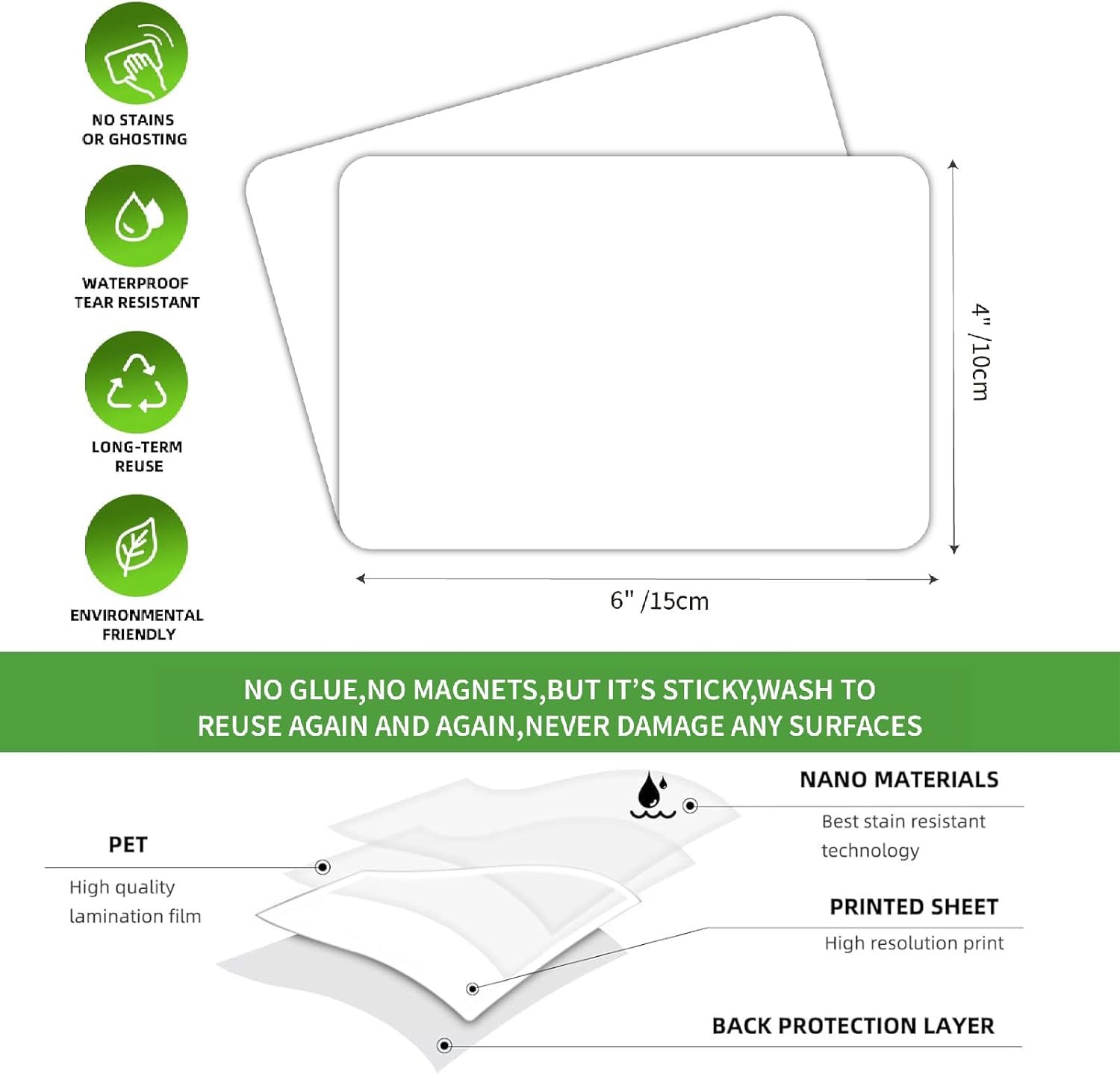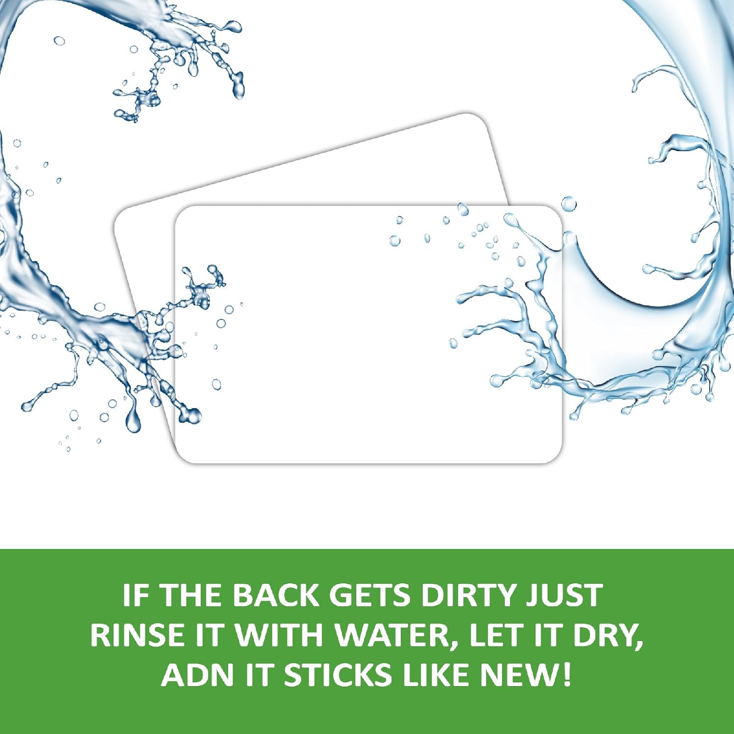 - The Reusable small Dry Erase board hold strong with removable adhesive designed to stick firmly, but will peel away cleanly and easily when needed, each label can be use up 10,000 times, just wash to renew if get dirty or stickless