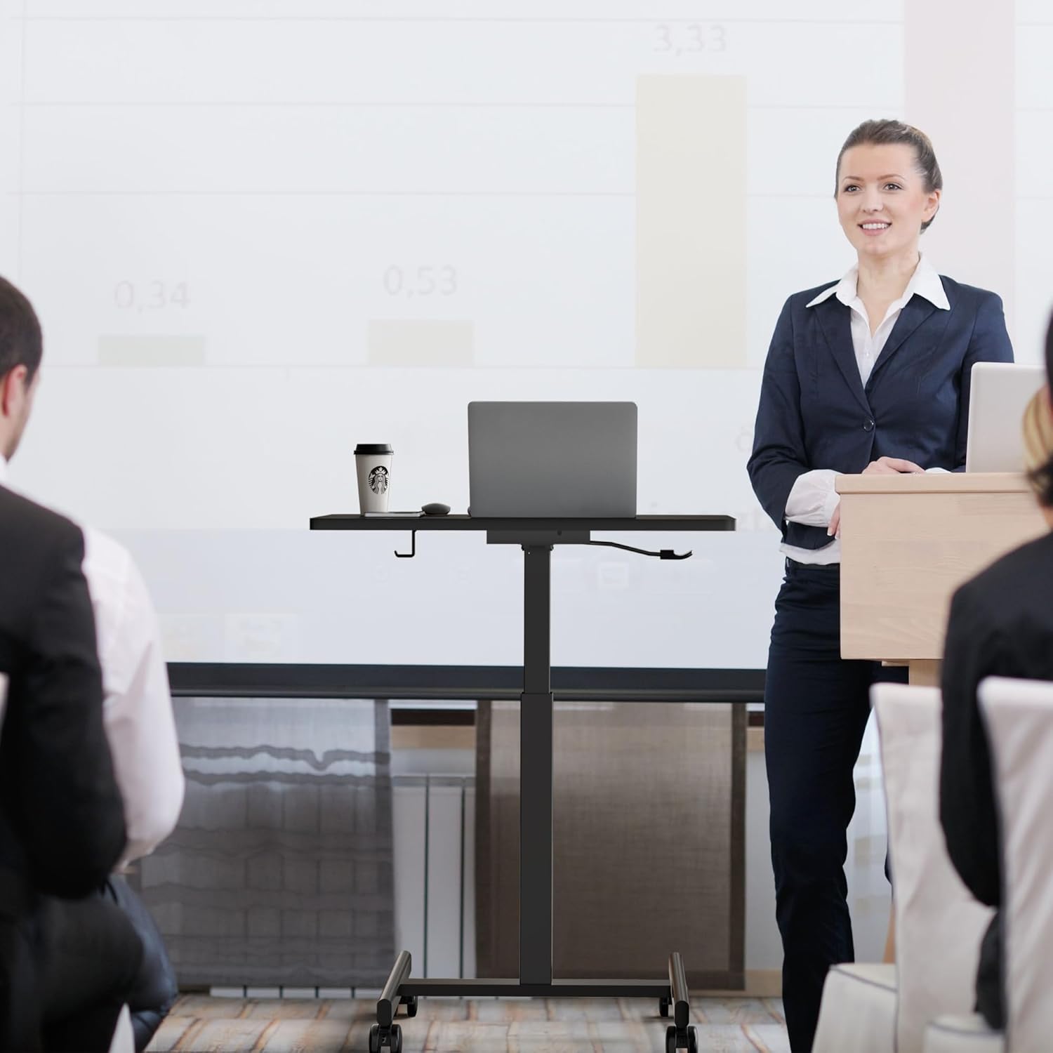 - Robust & Long-lasting Construction: Built with a sturdy frame and durable materials, our rolling standing desk is designed for heavy-duty, frequent use. The sleek, smooth desktop not only adds a modern aesthetic to any workspace but also boasts a weight capacity of 40 lbs