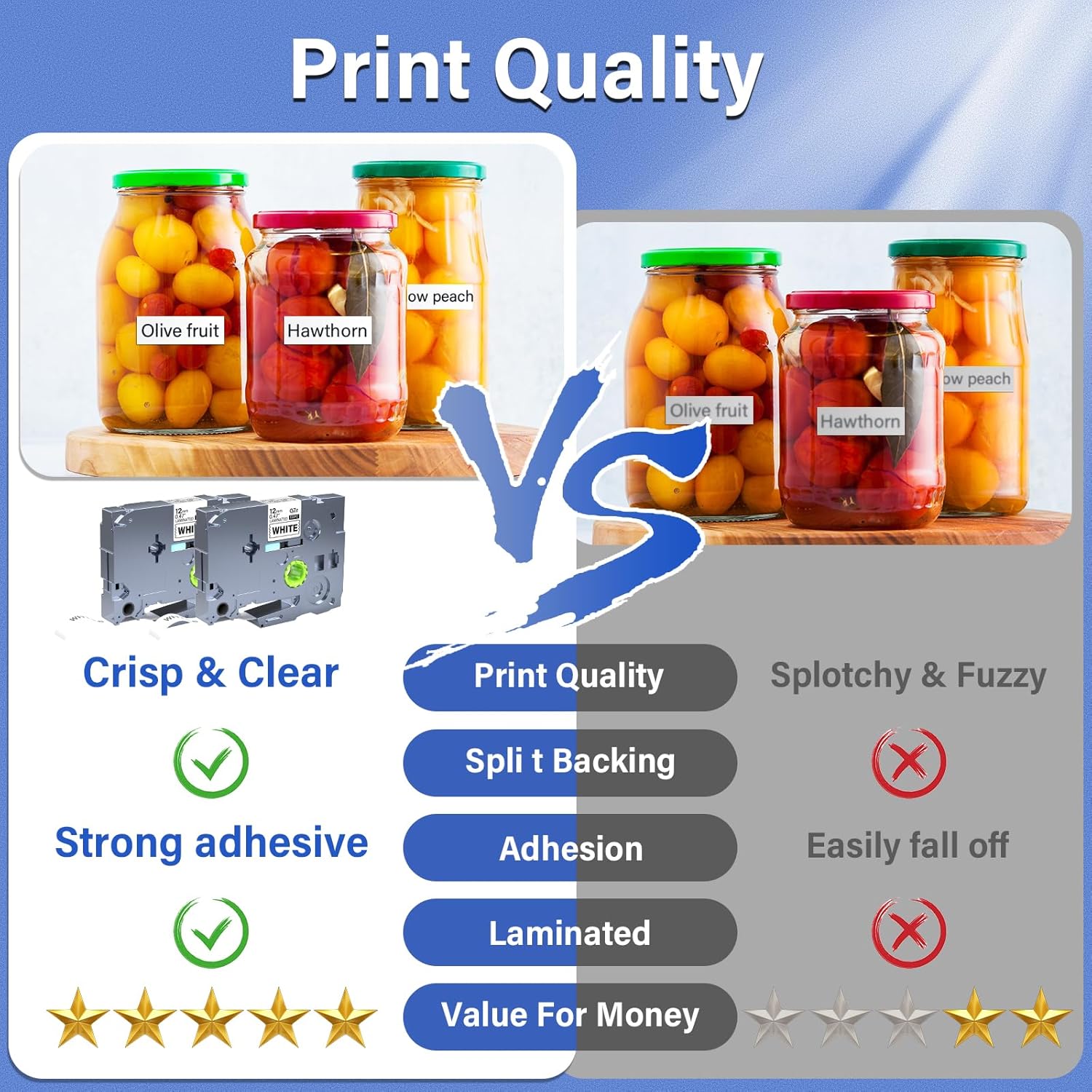 - [Wide Compatibility] This 8-pack of label maker tape is compatible with a wide range of Brother P-touch label makers, including P-Touch PT-D200, PT-D210, PT-D215E, PT-D400, PTD400AD, PT-D600, PTD600VP, PT-H100, PT-H110, PT-P300BT, PT-P700, PT-P710BT, PT-H300, PT-H300LI, PT-H500LI, PT-D450, PT-D600VP, PT-D800W, PT-1090, PT-1190, PT-1230PC, PT-1280, PT-1290, PT-1750, PT-1800, PT-1830, PT-1880, PT-1890C, PT-1890SC, PT-1890W, PT-1900, PT-1950, PT-2030, PT-2100, PT-2430PC, PT-2730, P-Touch Embellish, PT-6100, PT-9600.