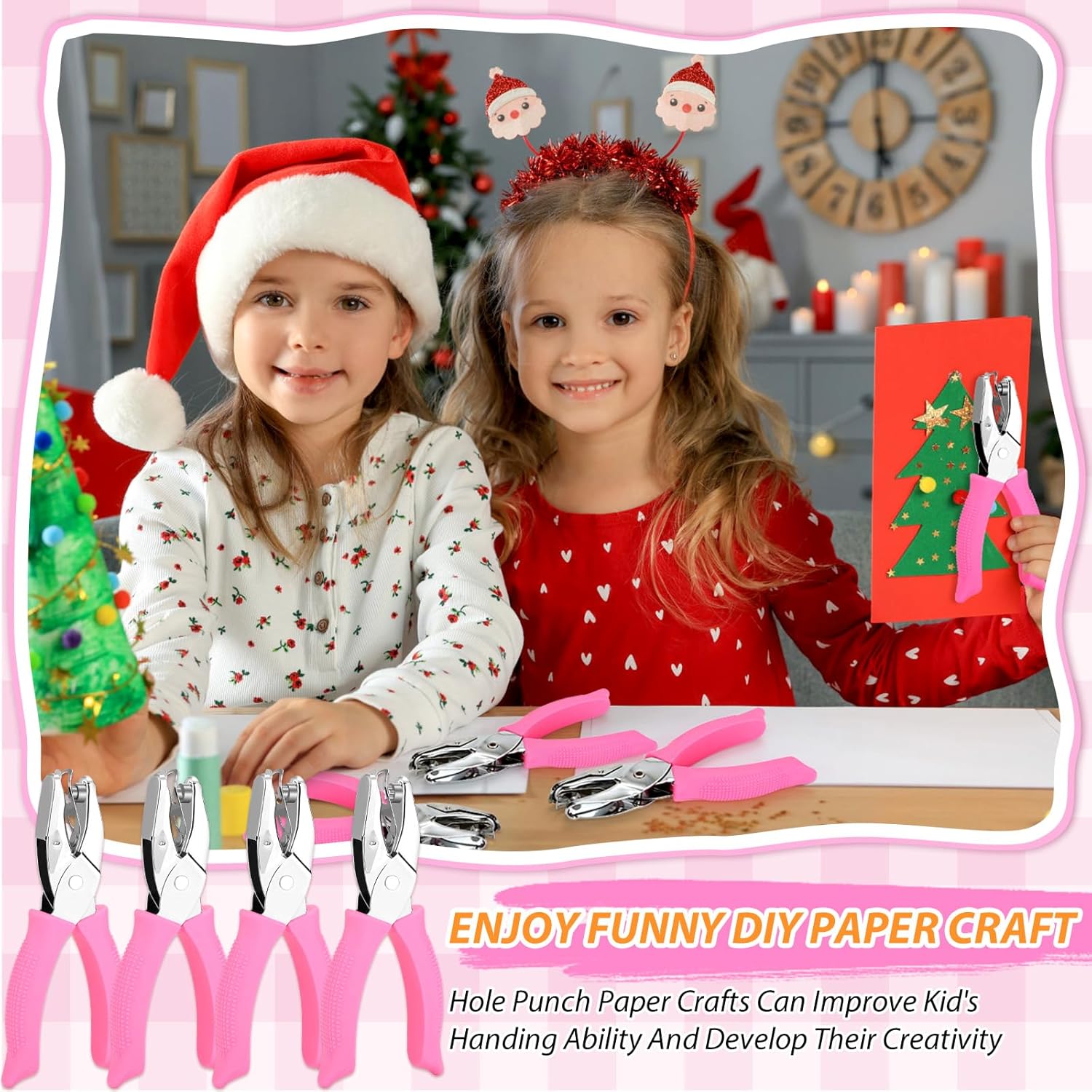 4 PCS 1/4" Hole Punchers for Crafts, Single Hole Punch Shapes with Circle Heart Star Triangle, with Soft-Handled for Binder Scrapbooking Classroom Card Punching Reinforcement Stickers