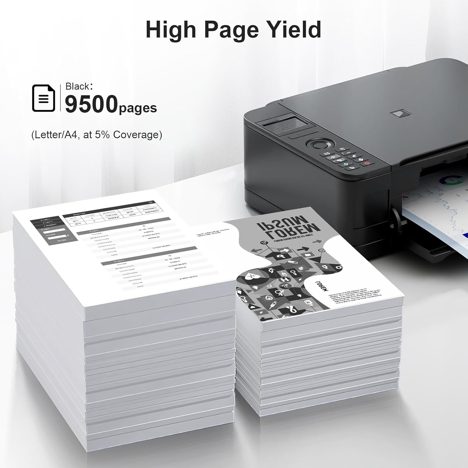 - Page Yield: Black ink is Up to 9500 pages per toner cartridge at 5% coverage(Letter/A4).