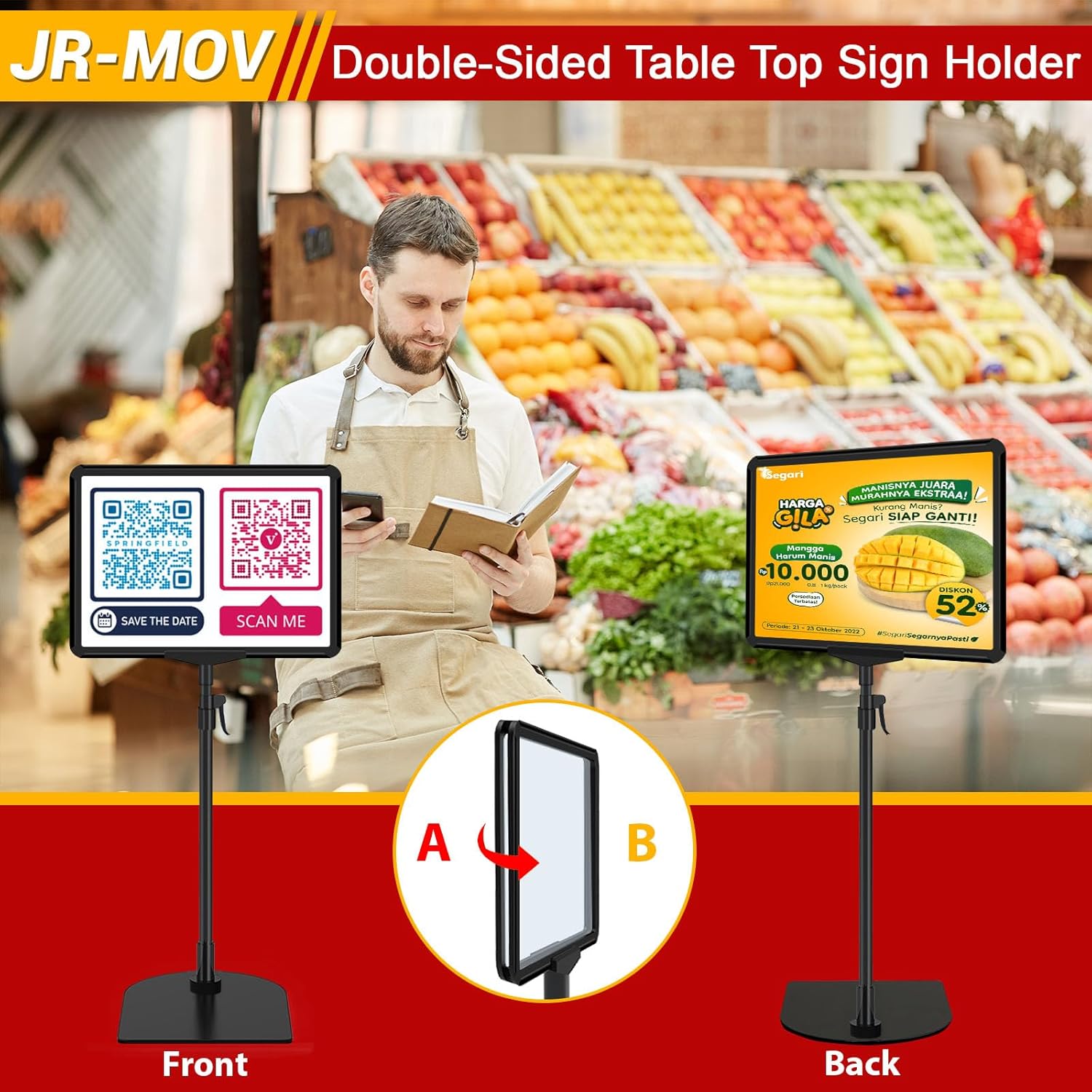 - Buy with Confidence: We stand behind each standing sign holder 8.5 x 11; if you have questions or are not satisfied, contact us for a satisfactory solution; enjoy reliable peace-of-mind with JR-MOV table sign holders
