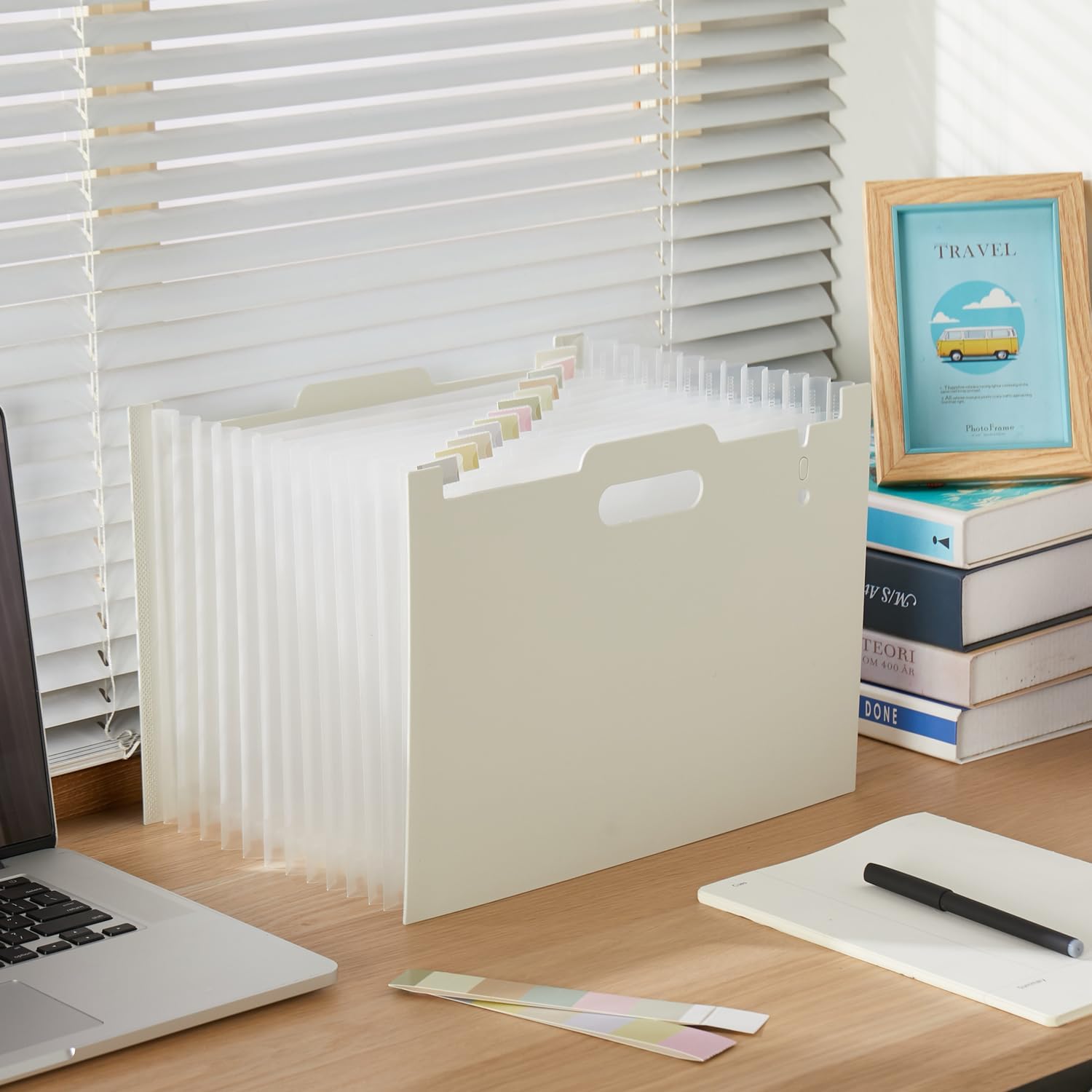 - Expandable Design - Featuring 12 pockets, this expandable folder offers ample storage space, holding up to 900 sheets of A4 or Letter Size sheet. When expanded, it stands upright on a desk for easy access
