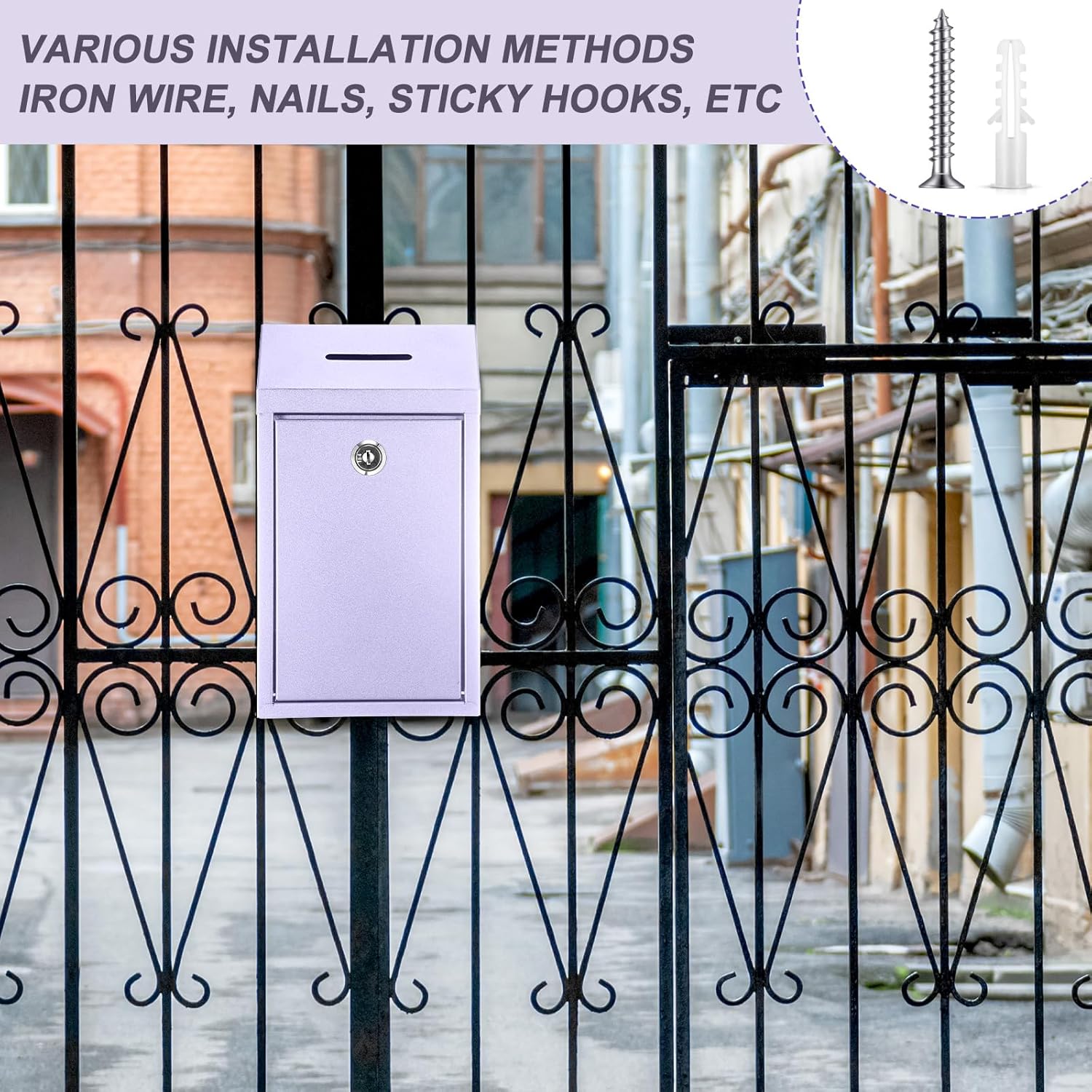 Metal Donation Cash Box Collection Safe Suggestion Box with Lock Wall Mounted Mailbox Delivery Ballot Container for Home Office Outdoor Door