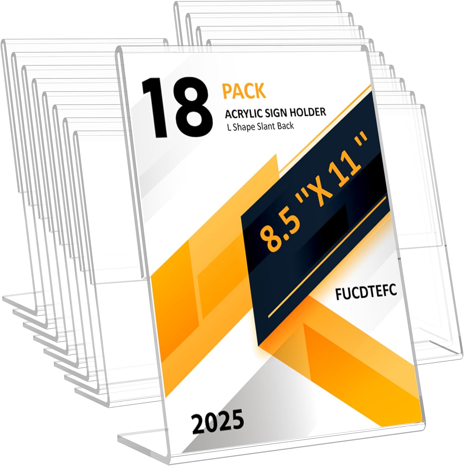 - Clear Display & Stable Slant Back: FUCDTEFC Unique L Shape clear acrylic sign holder 8.5 x 11 display with stable slanted base, not only adds visual appeal but also provides a sturdy foundation, ensuring your pictures remain stable presented. Whether retail store, office, School, our 8.5x11 acrylic sign holder is versatile and reliable. Note: Please remove the protective film before use,instantly enjoy the clear vision without blocking, make your flyer or logo more distinctive and eye-catching.