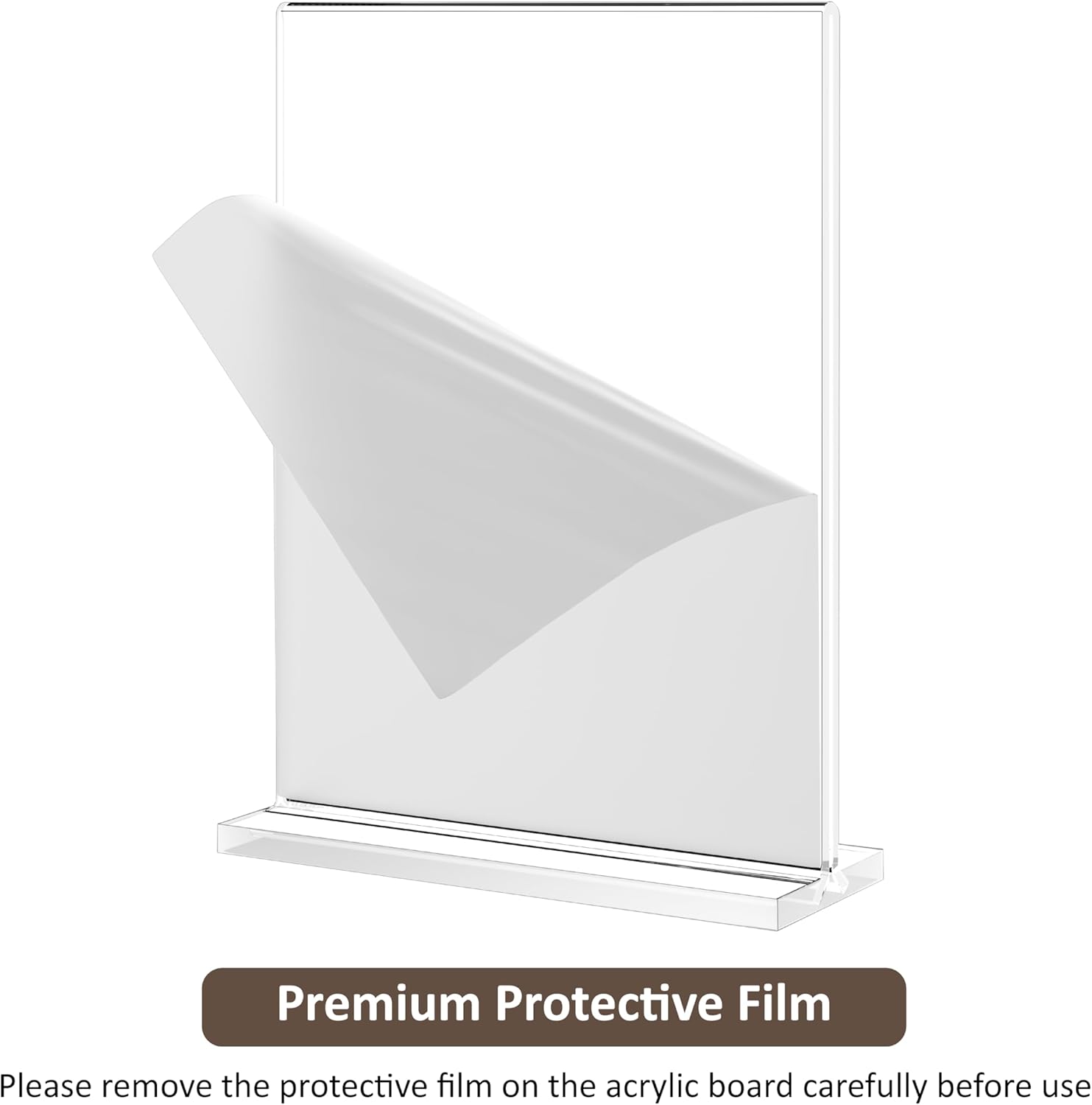 - Clear Display & Double-Sided Visible: FUCDTEFC Unique Double-sided acrylic sign holder 8.5 x 11 display with clear vision structure attract more attention, your information can be clearly presented on both sides of 8.5x11 acrylic sign holder. Note: Please remove the protective film of our acrylic sign holder 8.5 x 11 carefully before use, instantly enjoy the clear vision without blocking, make your flyer or logo more distinctive and eye-catching with our plastic sign holder 8.5 x 11 standing.