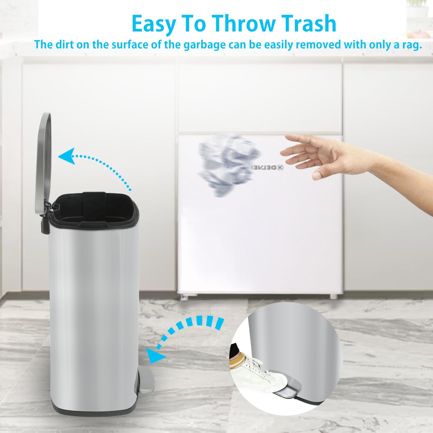 - Hand Free & Odor Control : Trash can with foot pedal allows you to dispose of trash without dirtying your hands or physically touching the trash can lid. The tight-fitting lid reduces odors, keeping your space fresh and the surrounding area smelling fresh and pleasant.