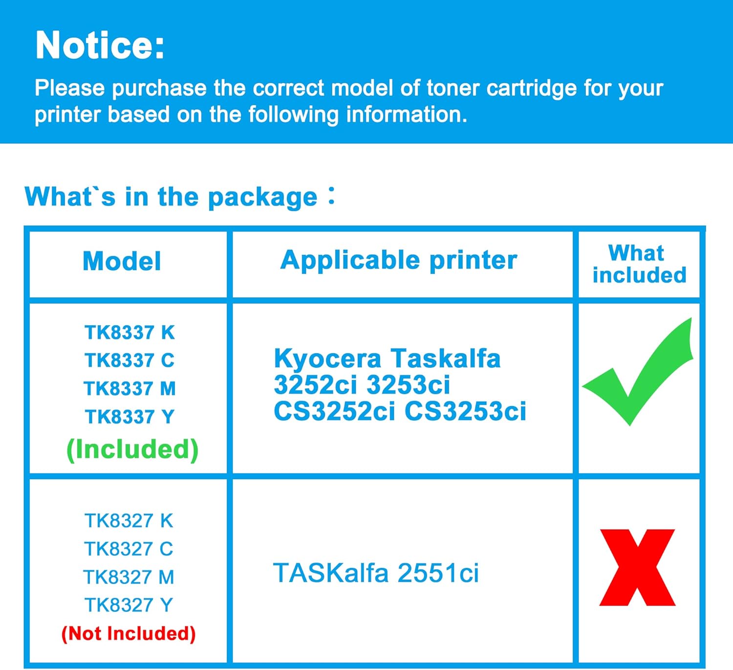 - Compatible Printers: Replacement for Kyocera Taskalfa 3252ci 3253ci CS3252ci CS3253ci