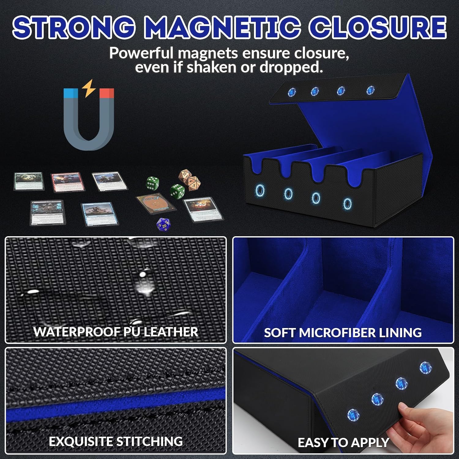 Card Storage Box for Trading Cards, 2800+ Card Deck Case with PU Leather and Magnetic Closure, TCG Storage Box, Suitable for MTG, YuGiOh, and Sports Cards, With 10 Card Dividers ๏ผ 4 Stoppers