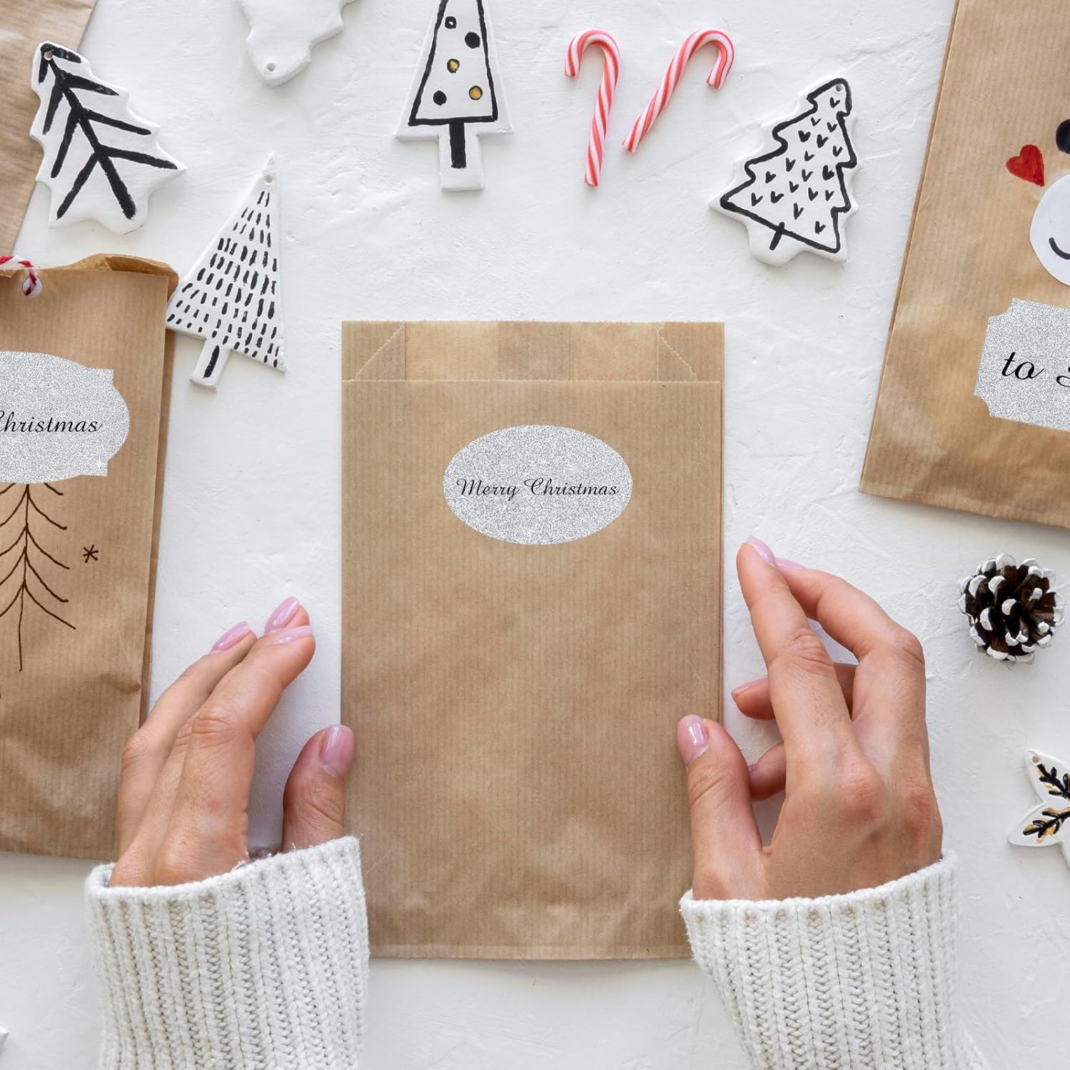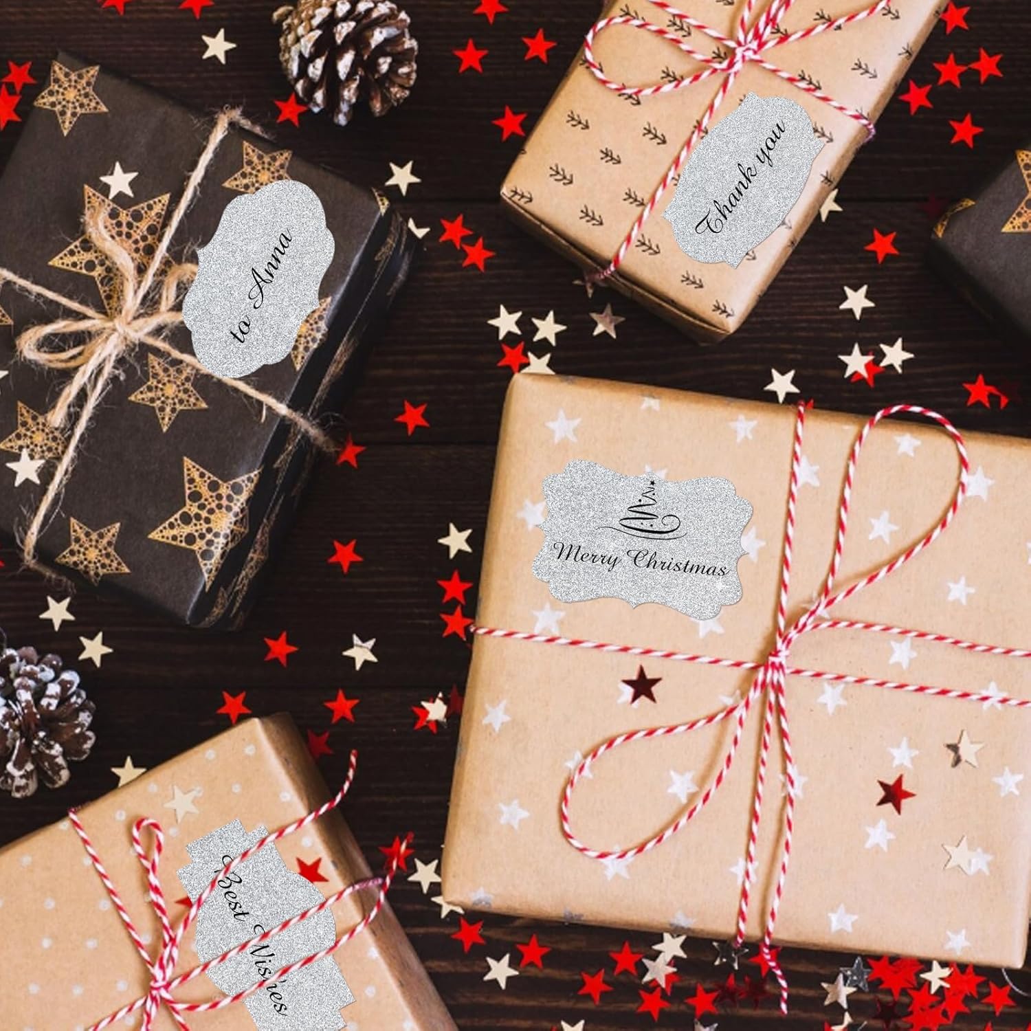 - Just need to peel off the sticker, write words and stick them where you want. With different color paper element, these sticker labels can not only be applied as Christmas gift tags, but also for wedding, birthday, mailing labels, name tags, etc.