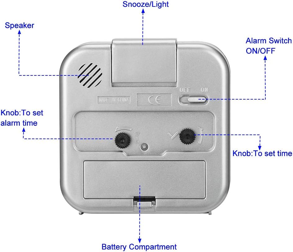 - Snooze and Light Function– Snooze and light button locates on easy-to-find top place. Hold button down for 5 minutes snooze or to light up the clock face on demand to see the dial momentarily in the darkness.