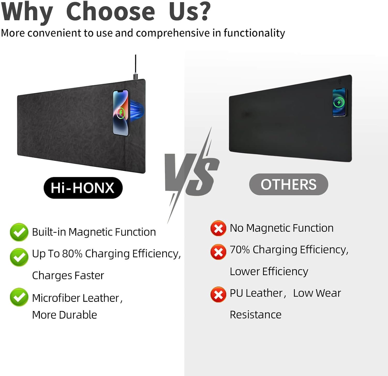 - Super Smooth Surface: Our wireless charging desk pad is crafted with premium microfiber leather fabric, offering a surface with an unparalleled smooth touch, enhancing the precision of your mouse control and elevating your user experience