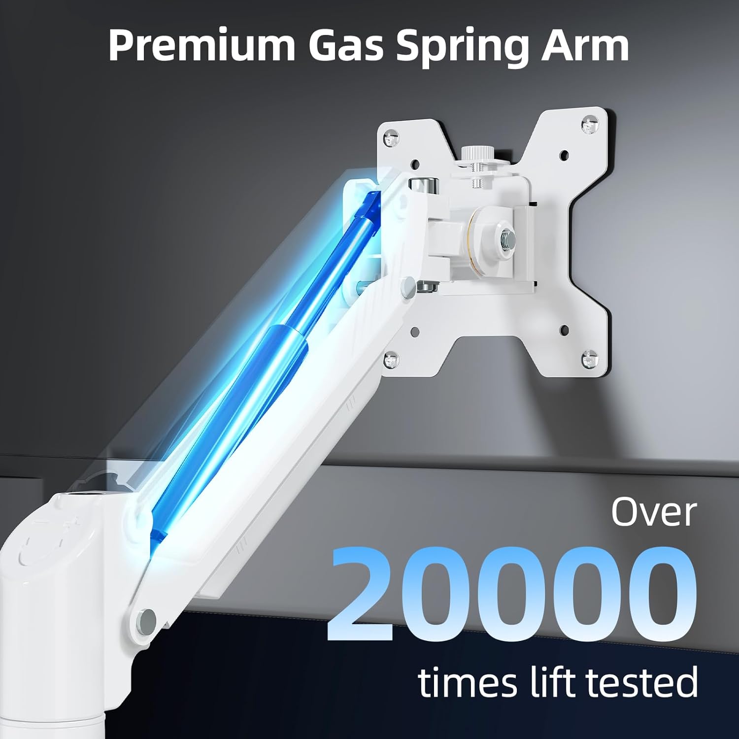 Monitor Arm for 13-32 inch Screens, Monitor Desk Mount, Adjustable Height, VESA Mount with Clamp & Grommet Bases, Freelift White