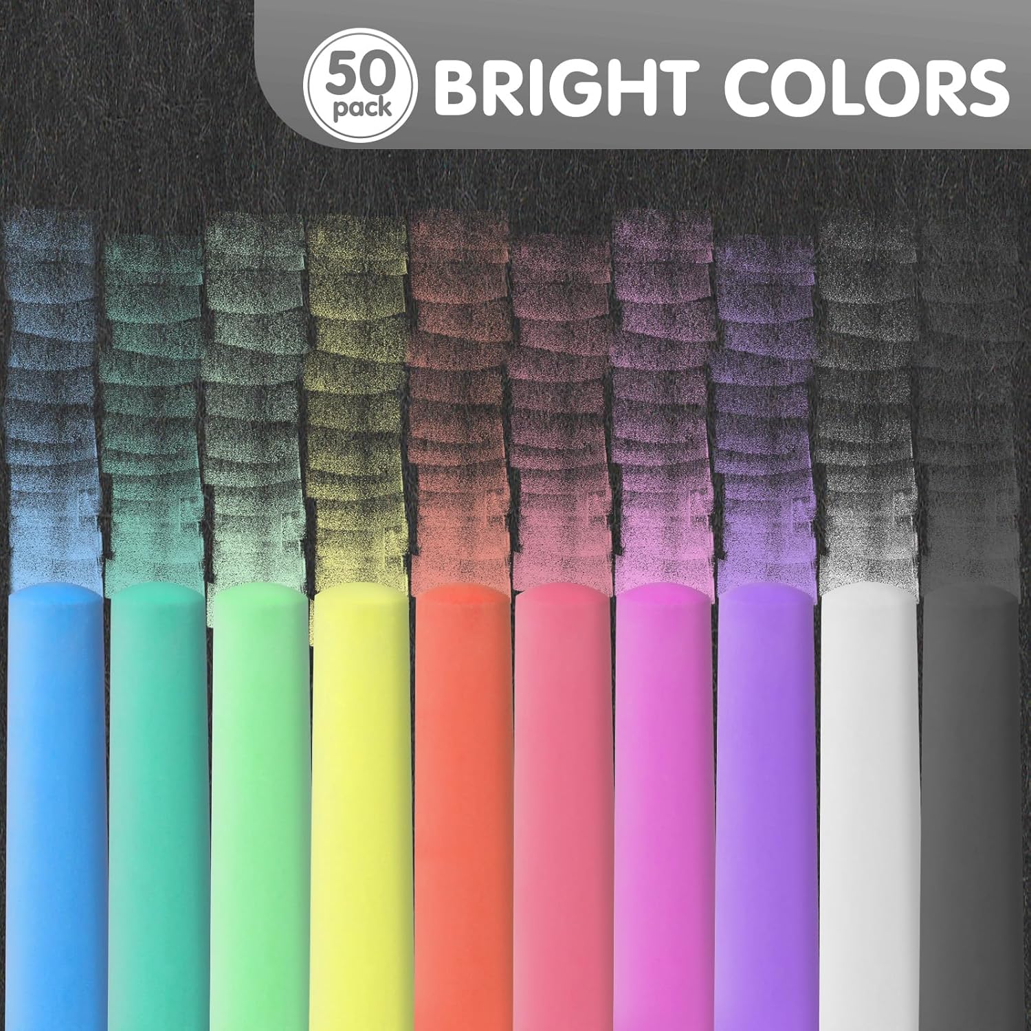 50 Pack Washable Sidewalk Chalks for Kids Non-Toxic Jumbo Chalk for Outdoor Art Play