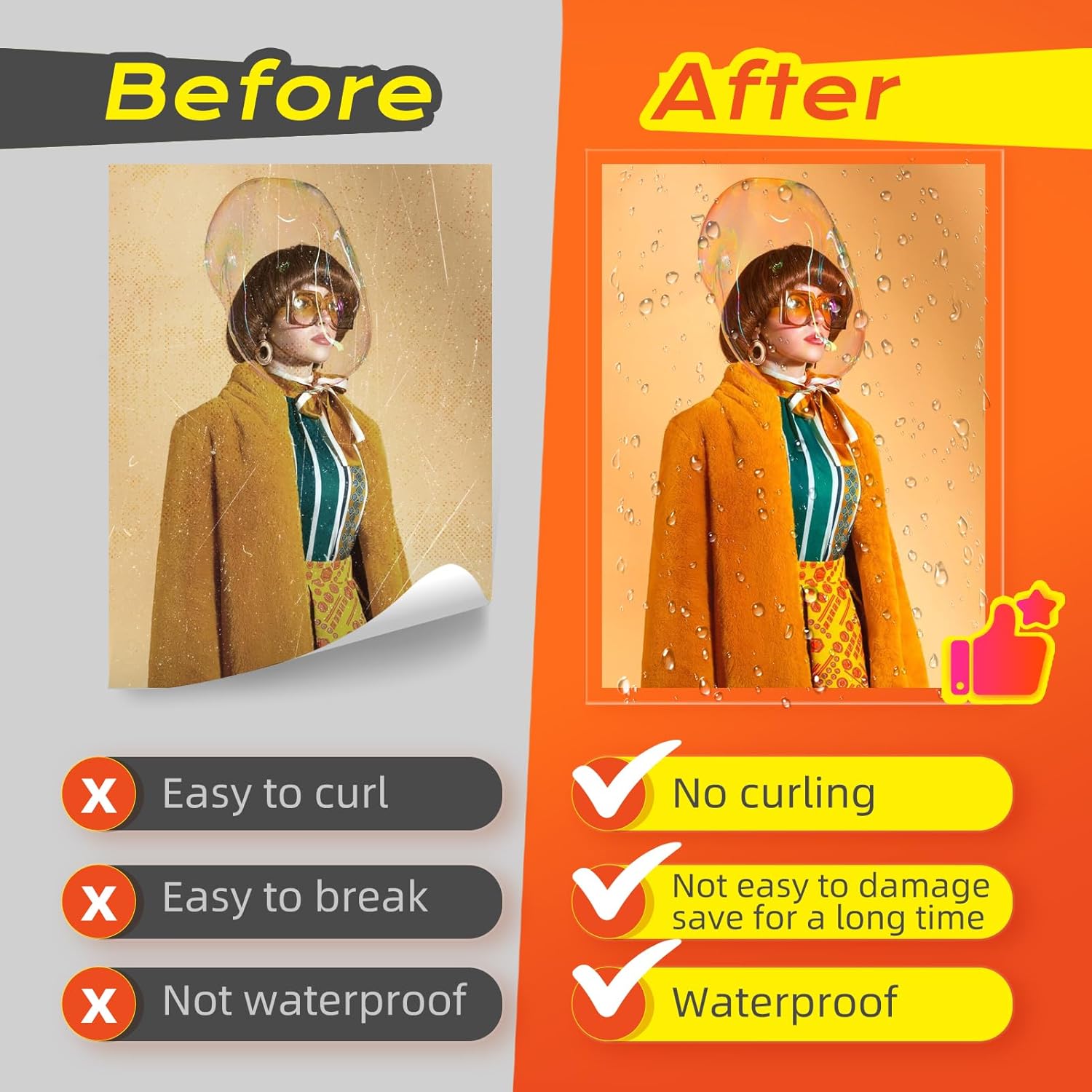 - WIDE APPLICATION:It is perfect for protecting your photos, certificates, cards, recipes, stickers, stencils,planner decorations, to-do lists, recipe cards, and schedulers,collected news and magazine ,and more because our self-adhesive laminated paper is waterproof, transparent, sticky, and wipeable. In addition, you can also be creative and use it to make handicrafts such as dried flowers and specimens or paste the clear laminating sheets in the kitchen, window, and other places that are not easy to clean. Don't limit your imagination, and just create.