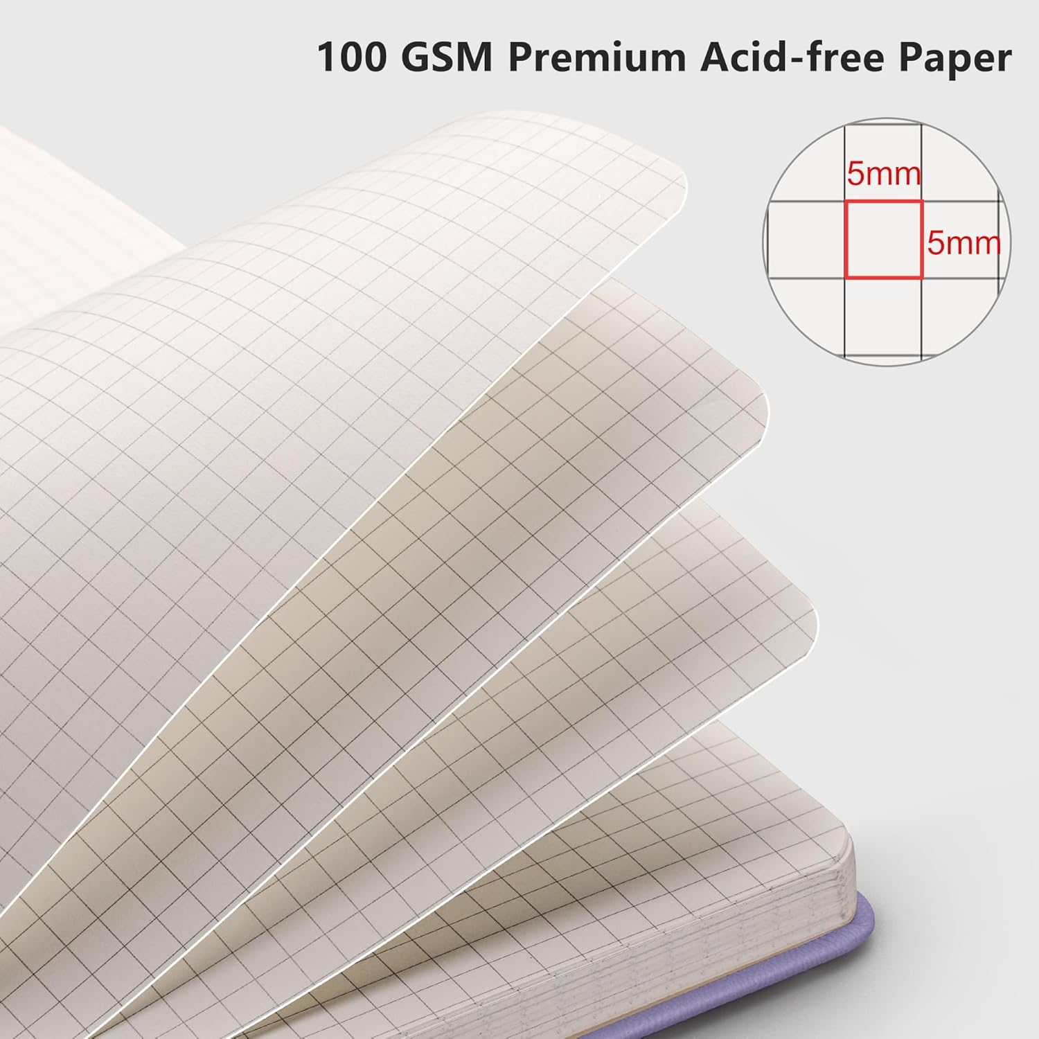 - PREMIUM PAPER: Crafted with time-resistant 100 GSM paper, our graph notebook preserves thoughts flawlessly while resisting ghosting/bleed-through with most pens. Acid-free material ensures long-term preservation, and its smooth surface enhances writing clarity - blending durability and premium performance