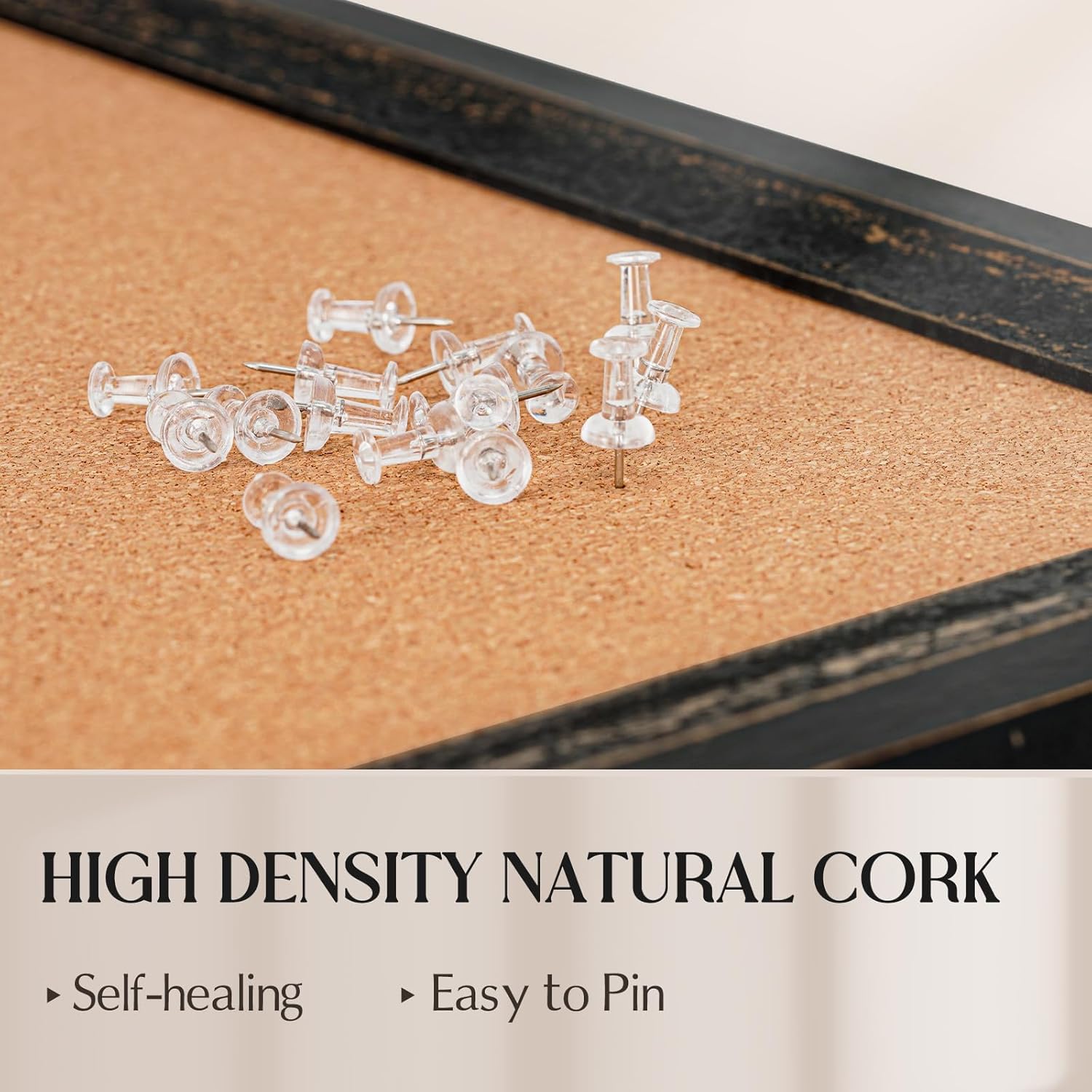 Cork Bulletin Board, 36" x 24" Corkboard for Wall, Rustic Black Wooden Frame, Hanging Pin Board for Home & Office Decor, 10 Push Pins