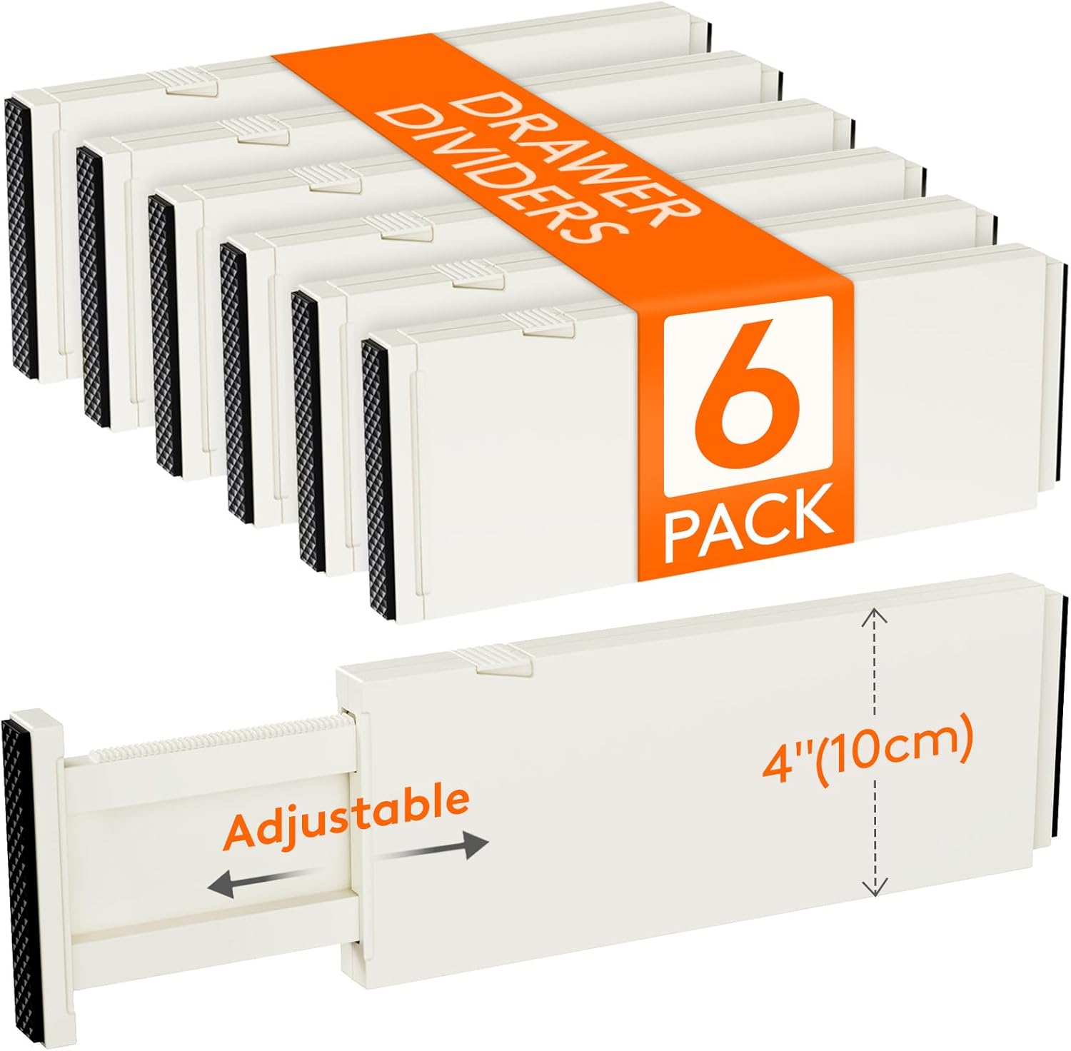 Lifewit 6 Pack Drawer Dividers 4" High, 11-17" Adjustable Drawer Organizers for Clothes, Expandable Dresser Separators in Bedroom/Bathroom/Kitchen/Fridge/Office Organization and Storage, Beige